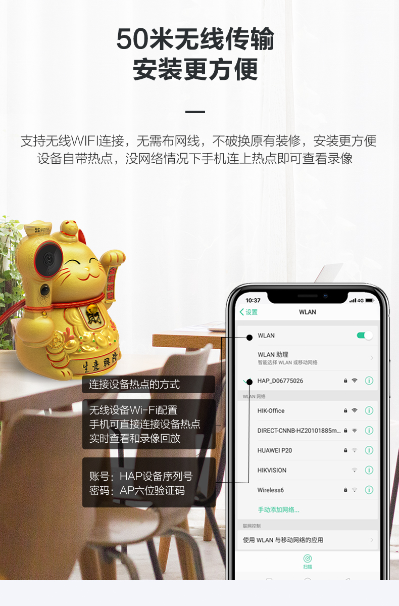 萤石 招财猫互联网摄像机CS-HTQ2S 单位:个 金色