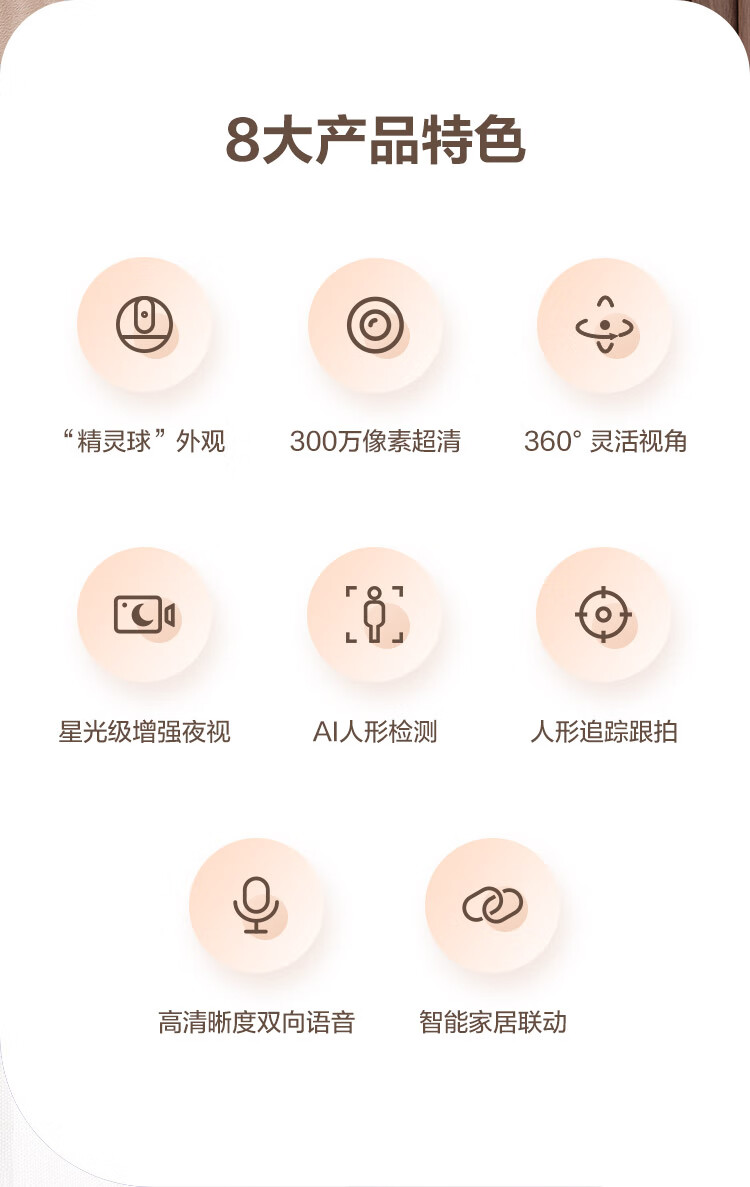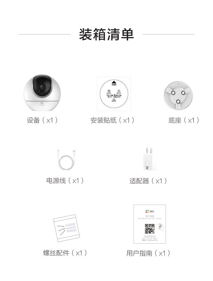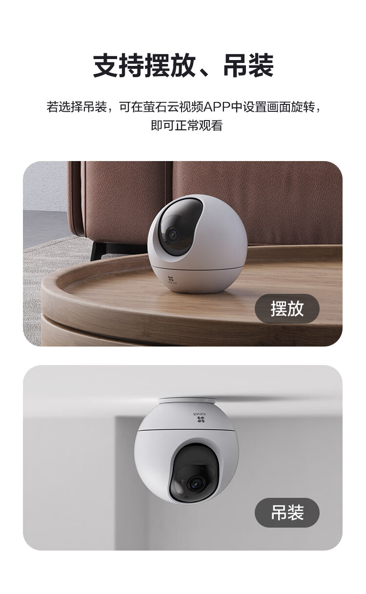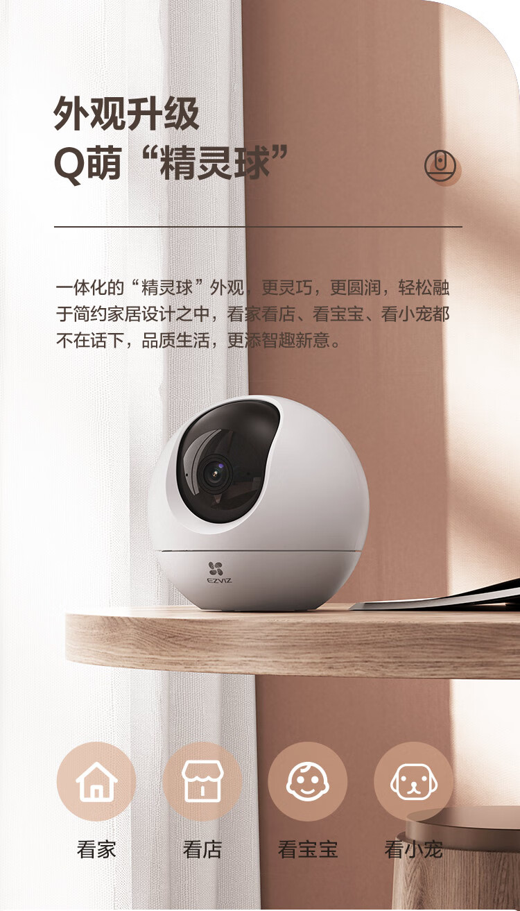 萤石 室内云台网络300万摄像机C6C精灵球 单位:个 白色