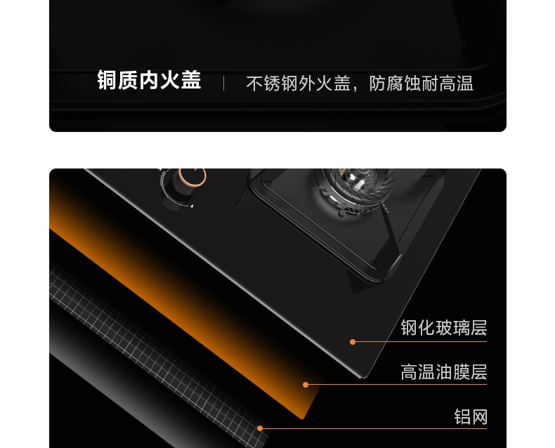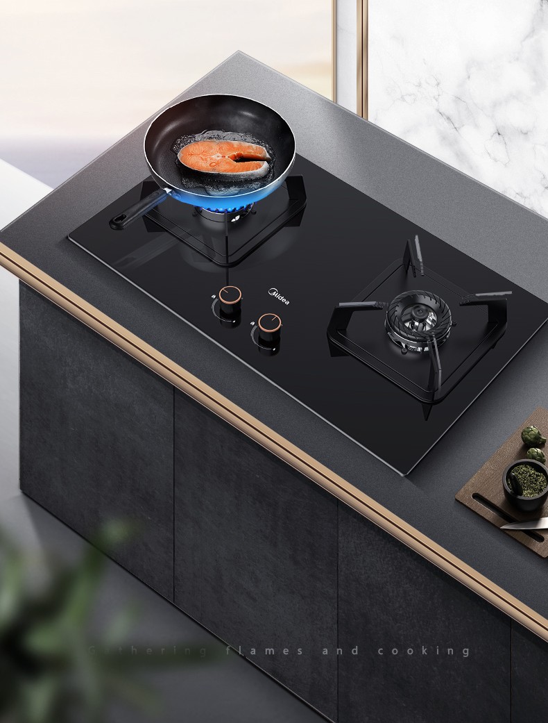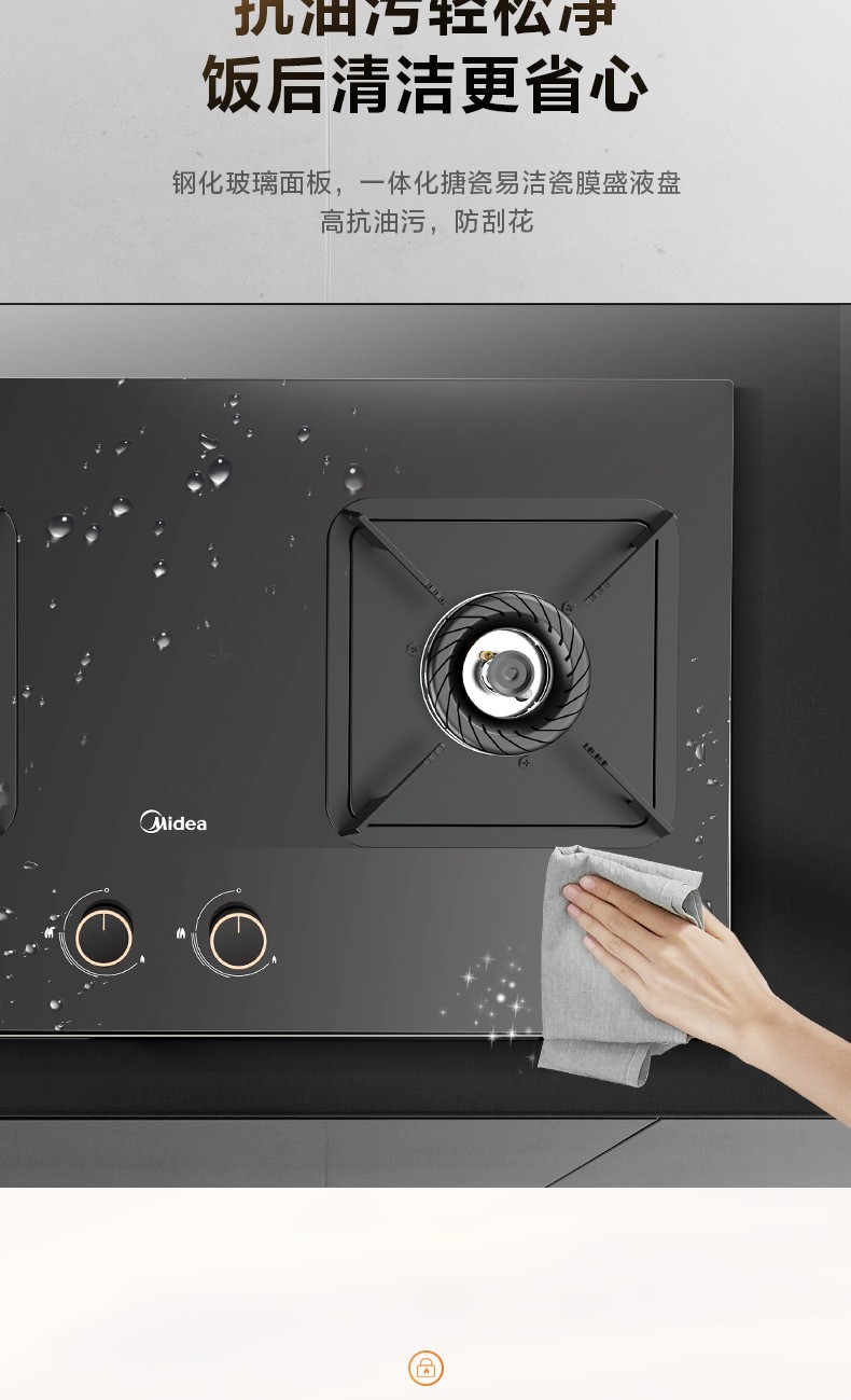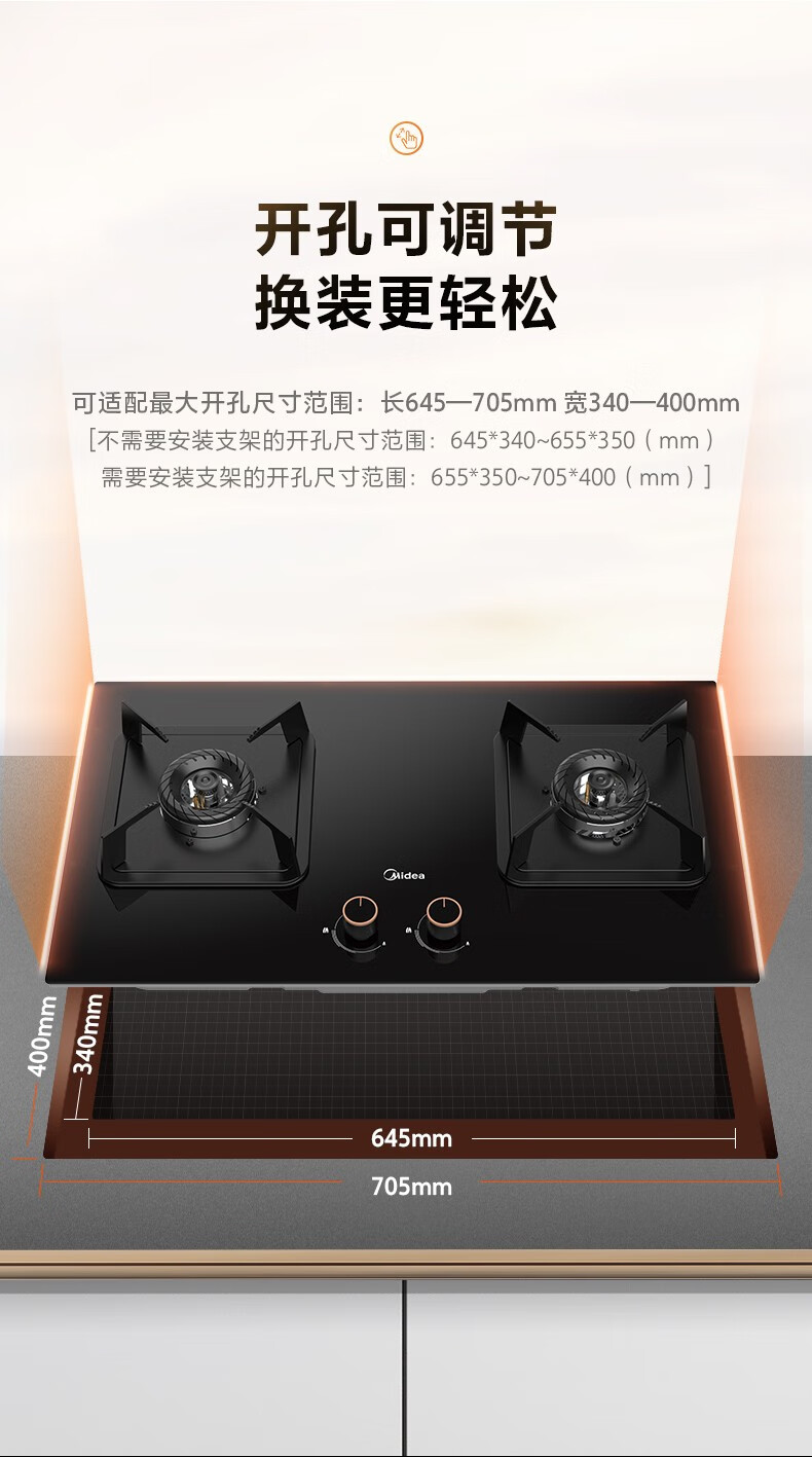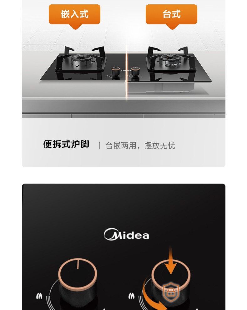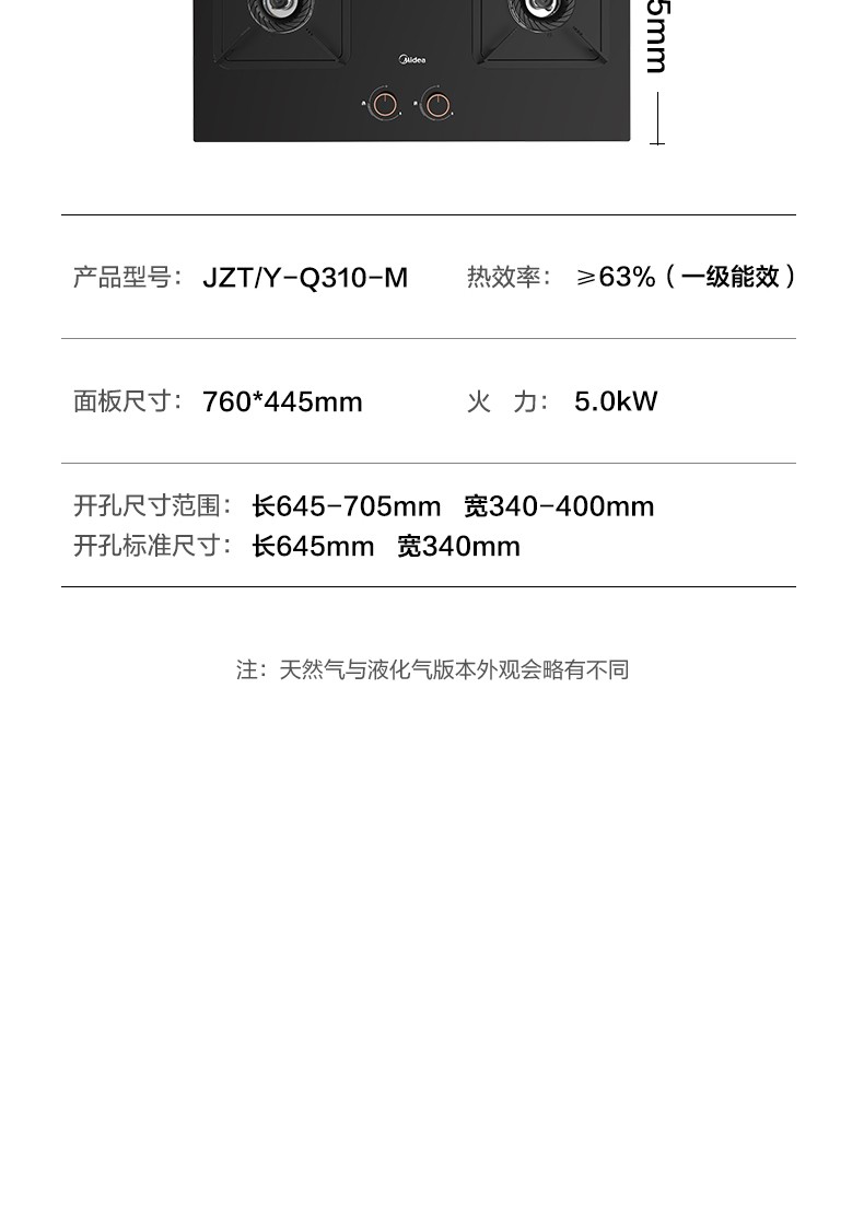美的燃气灶JZT-Q310-M 嵌入式燃气灶 钢化玻璃 双头 天然气 一级能效 电池 电(单位:台) 黑色