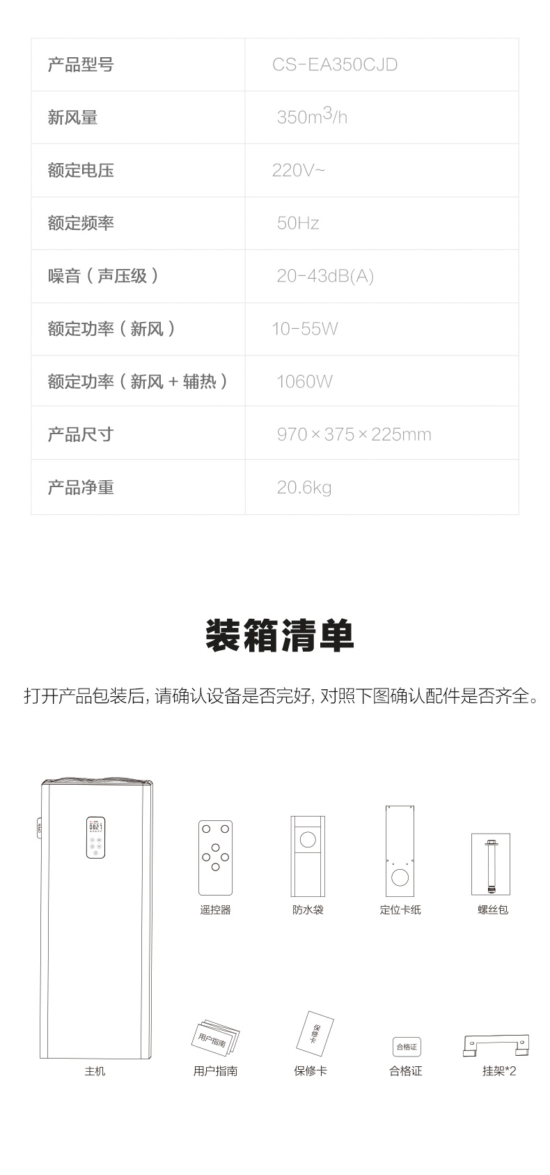 萤石 除甲醛新风机EA350CJD(不含安装)单位:个 白色