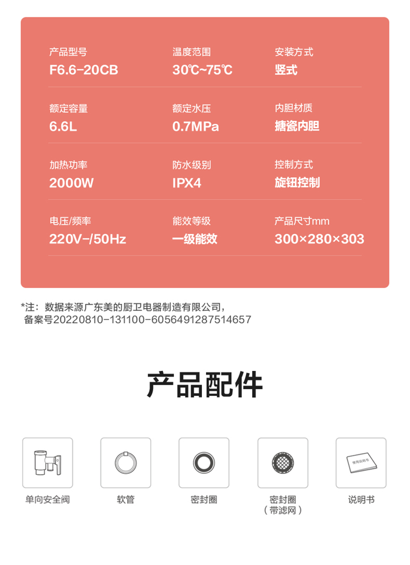美的电热水器F6.6-20CB(ES) 电热水器6.6L 极地白(单位:台) 极地白