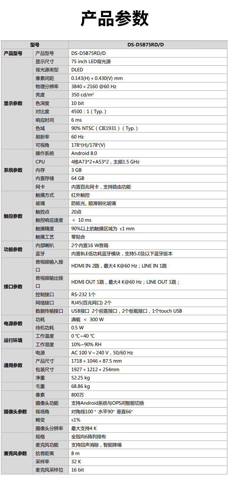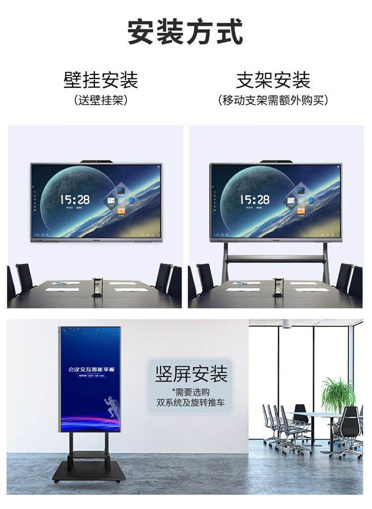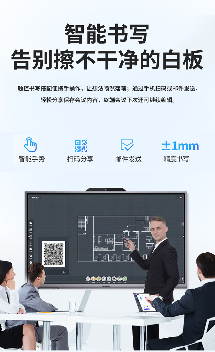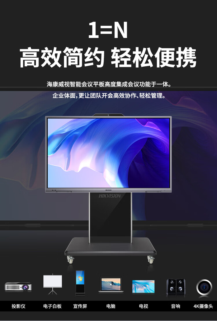 海康威视会议平板一体机 75英寸4K超清触屏 视频会议多媒体显示器 DS-D5B75RD/E 套 曜石黑