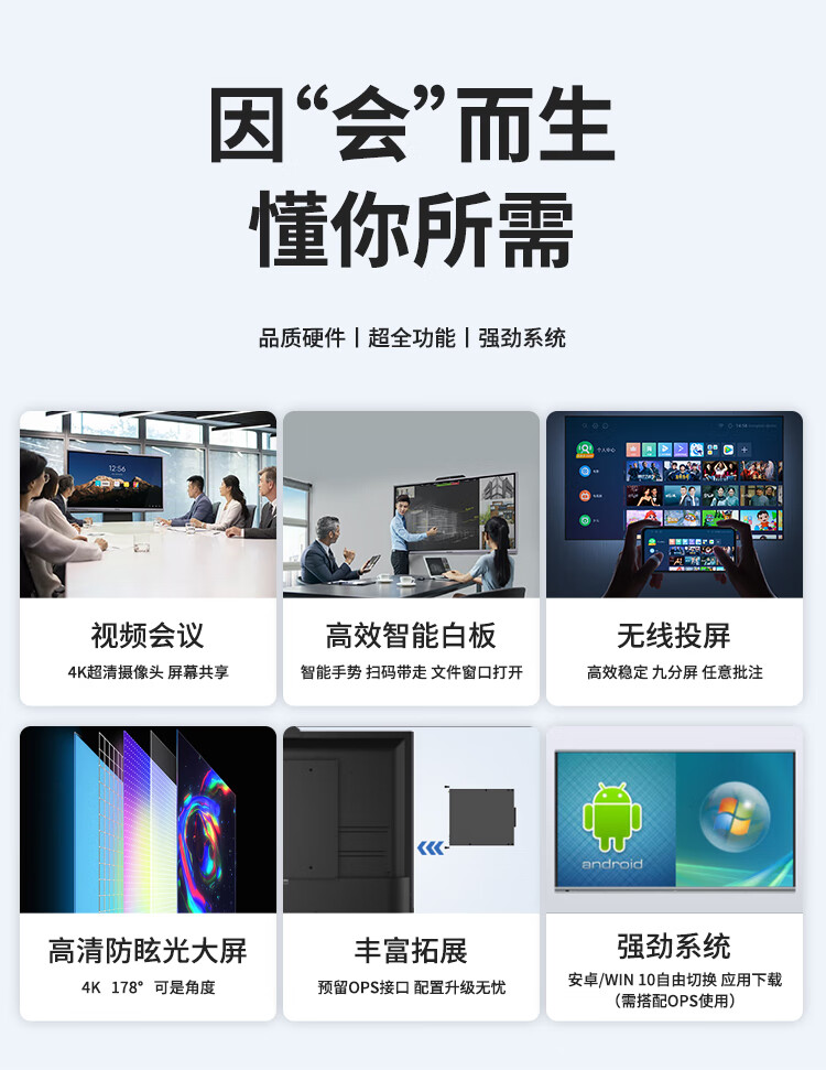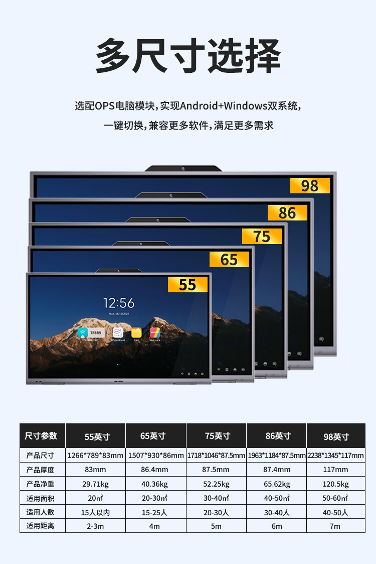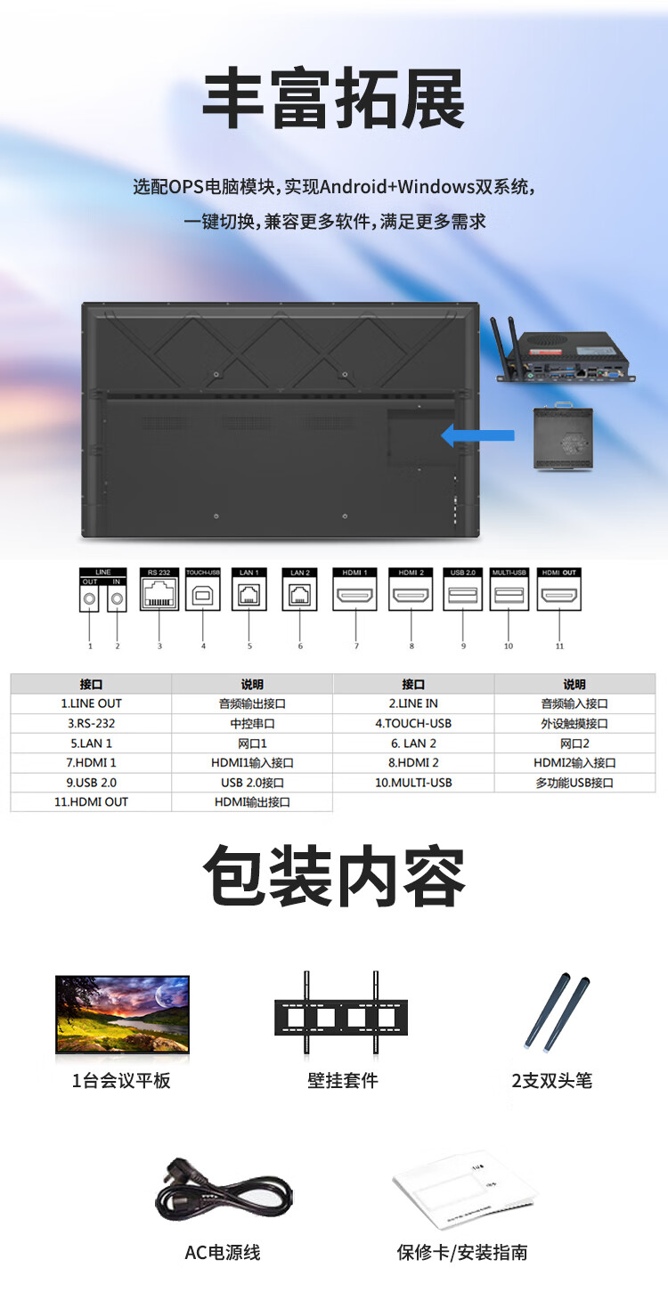 海康威视会议平板一体机 75英寸4K超清触屏 视频会议多媒体显示器 DS-D5B75RD/E 套 曜石黑