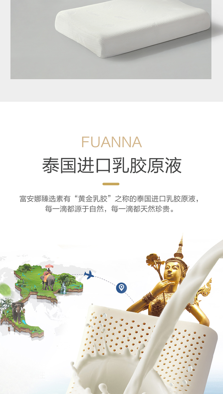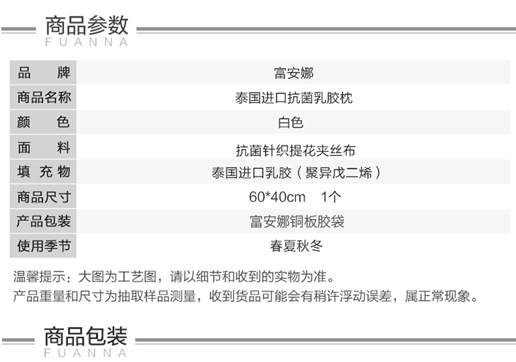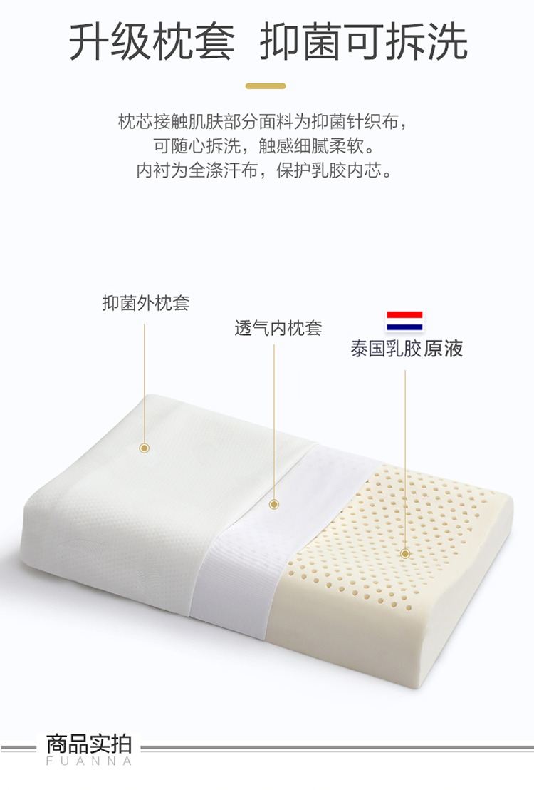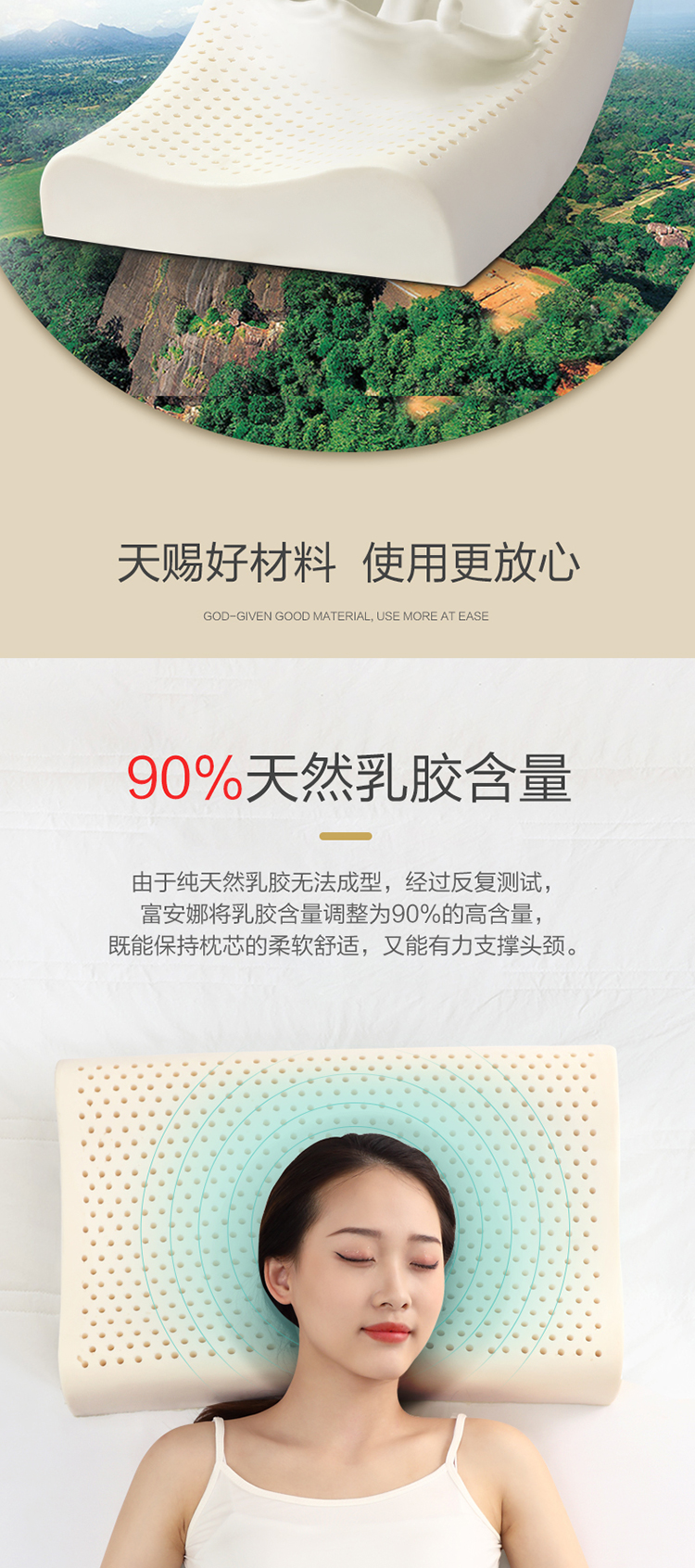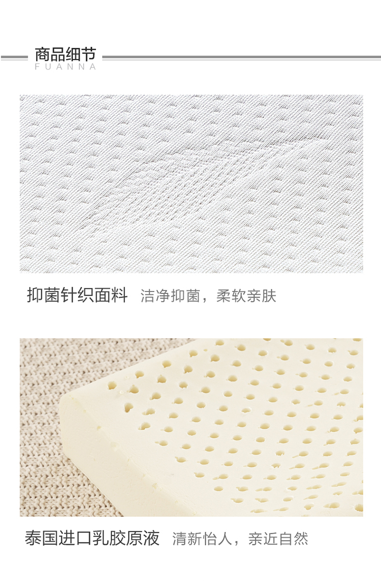 富安娜泰国进口天然乳胶枕 头芯 升级抗菌面料波浪透气 成人颈椎枕60*40cm 单位:个 白色