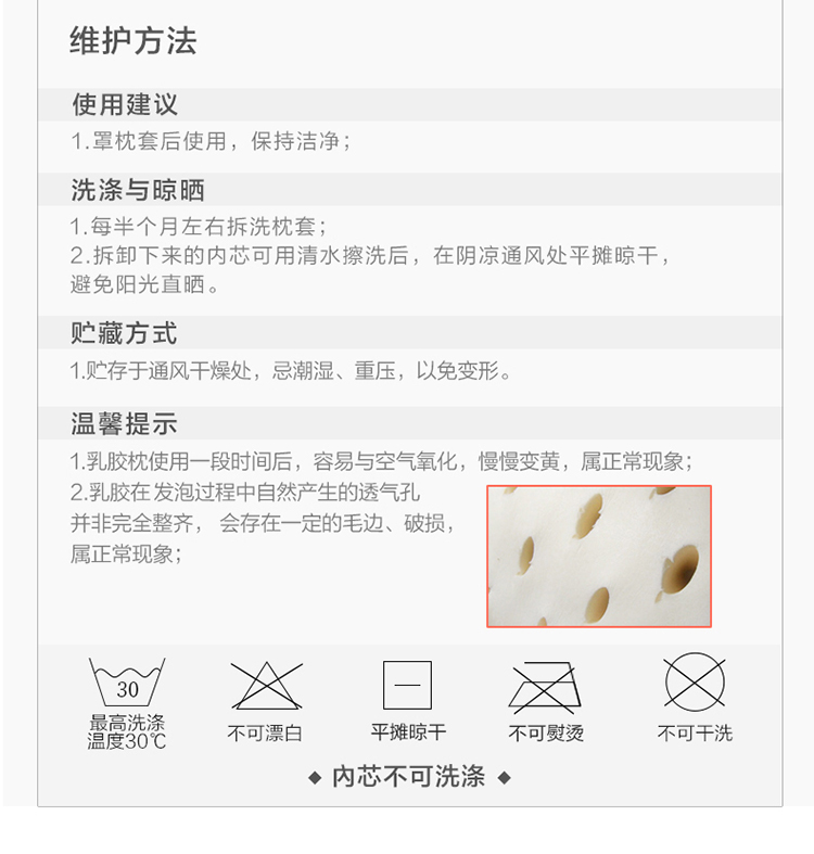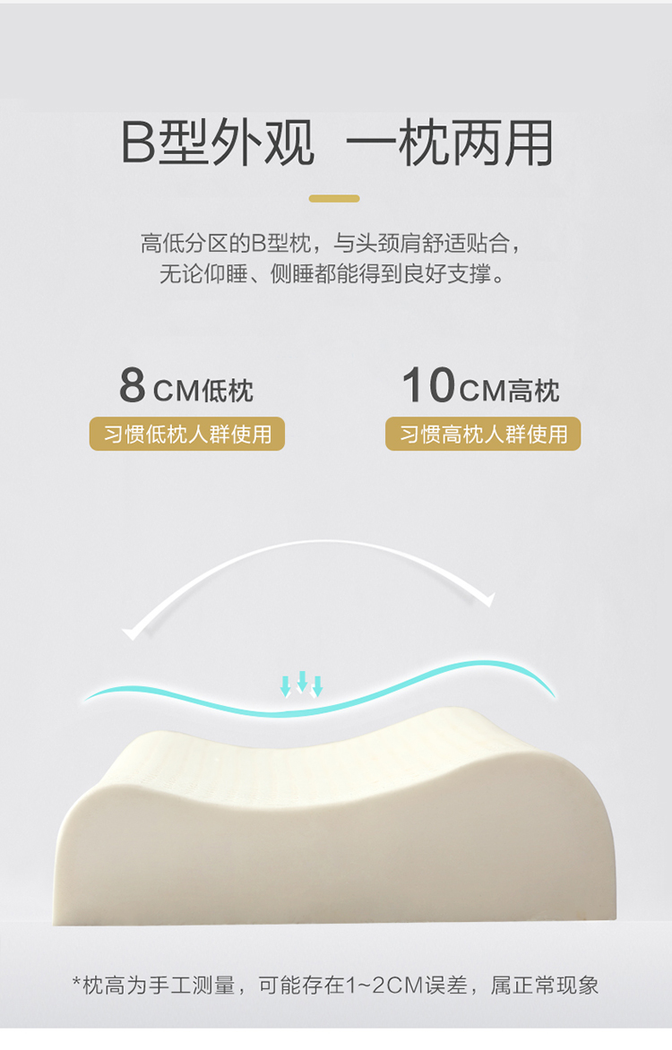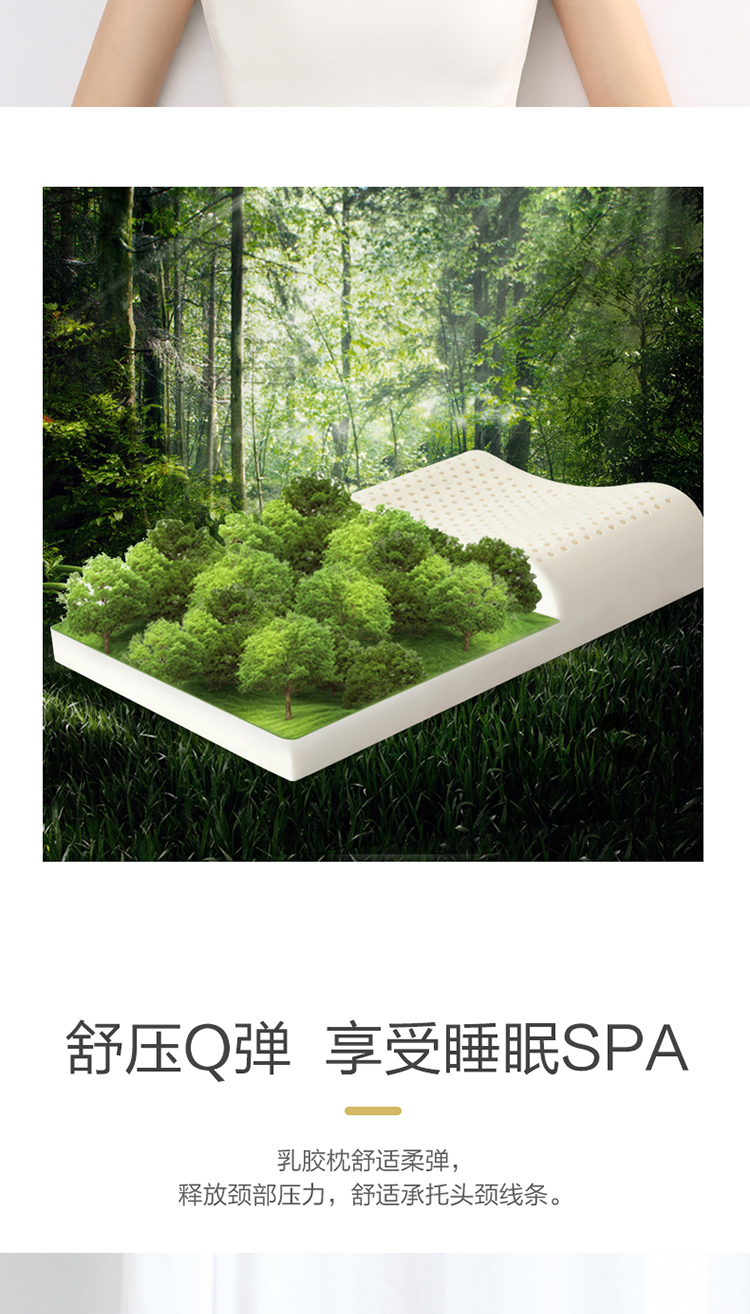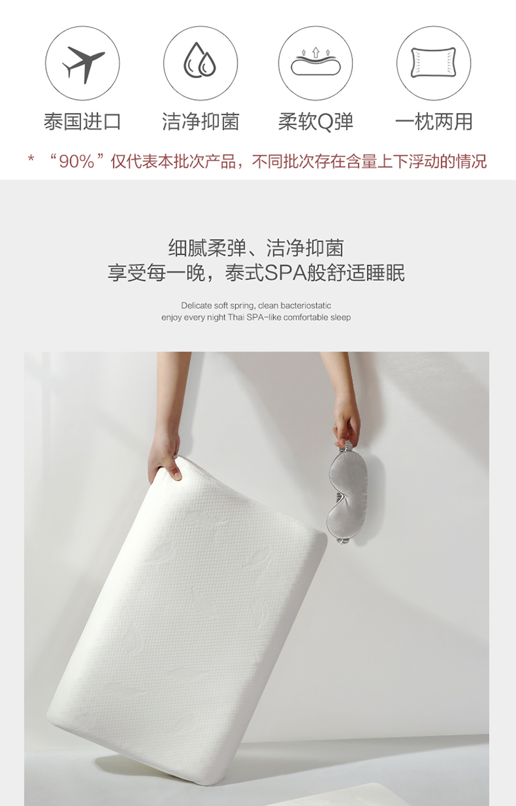 富安娜泰国进口天然乳胶枕 头芯 升级抗菌面料波浪透气 成人颈椎枕60*40cm 单位:个 白色