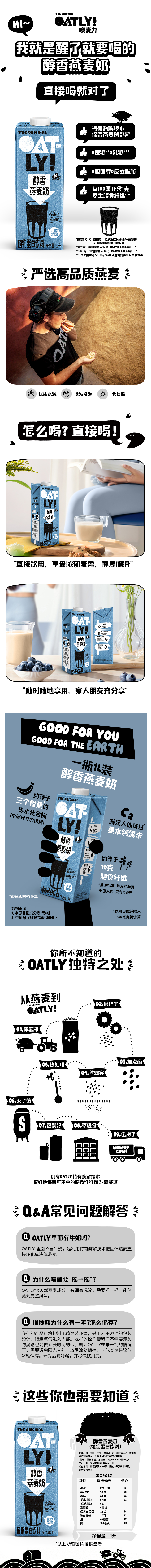 Oatly噢麦力原味醇香燕麦奶1L*6 灰色