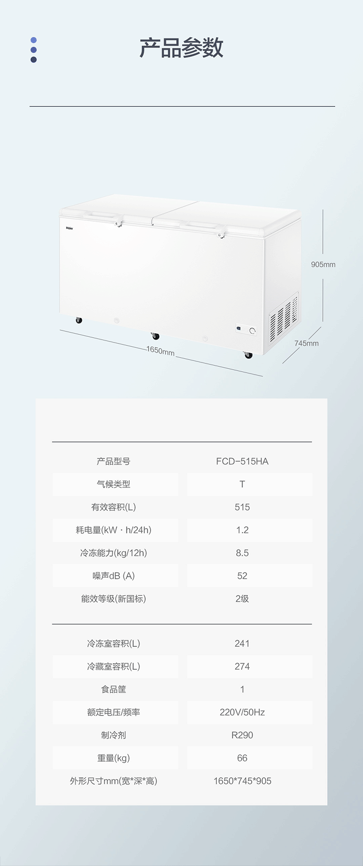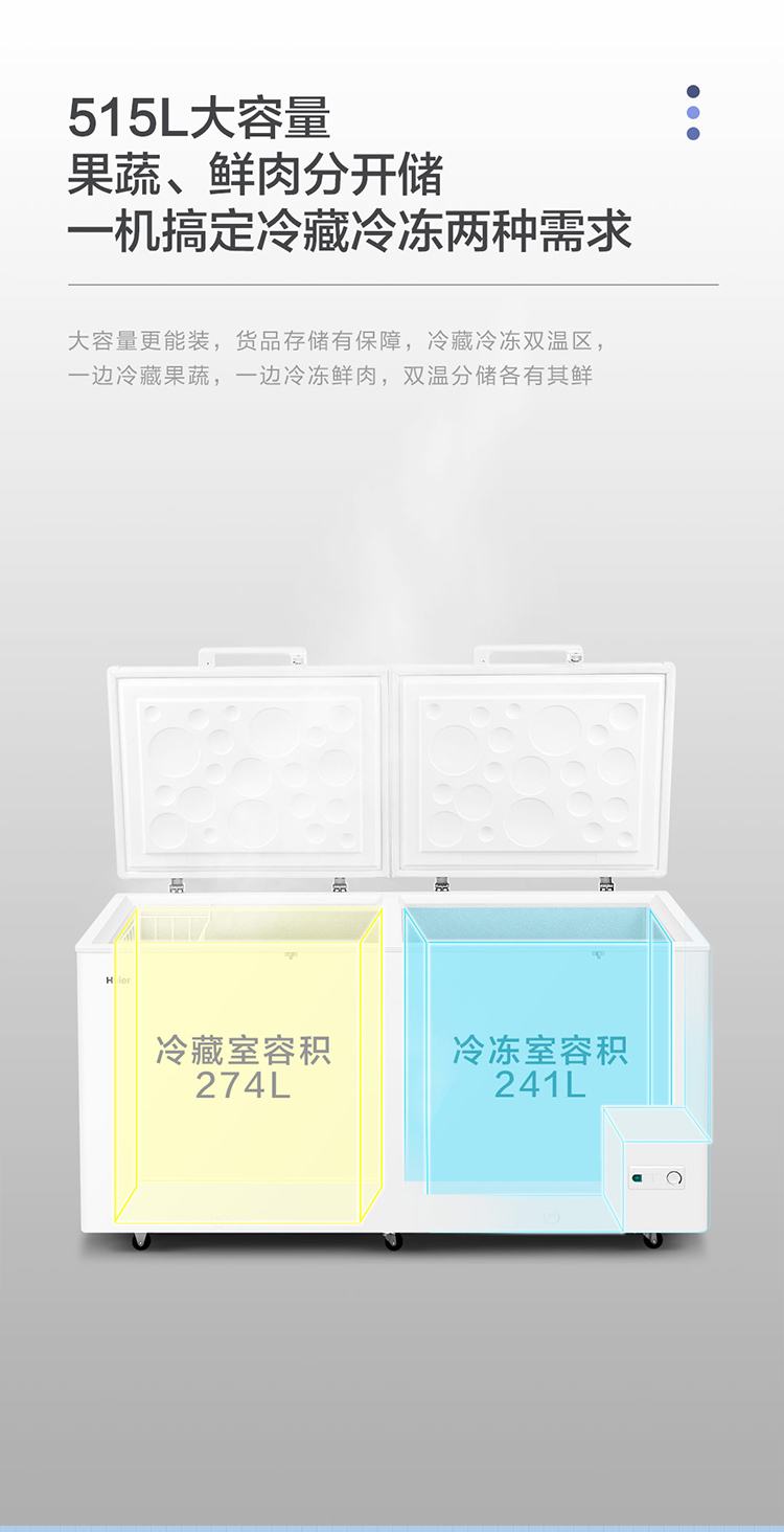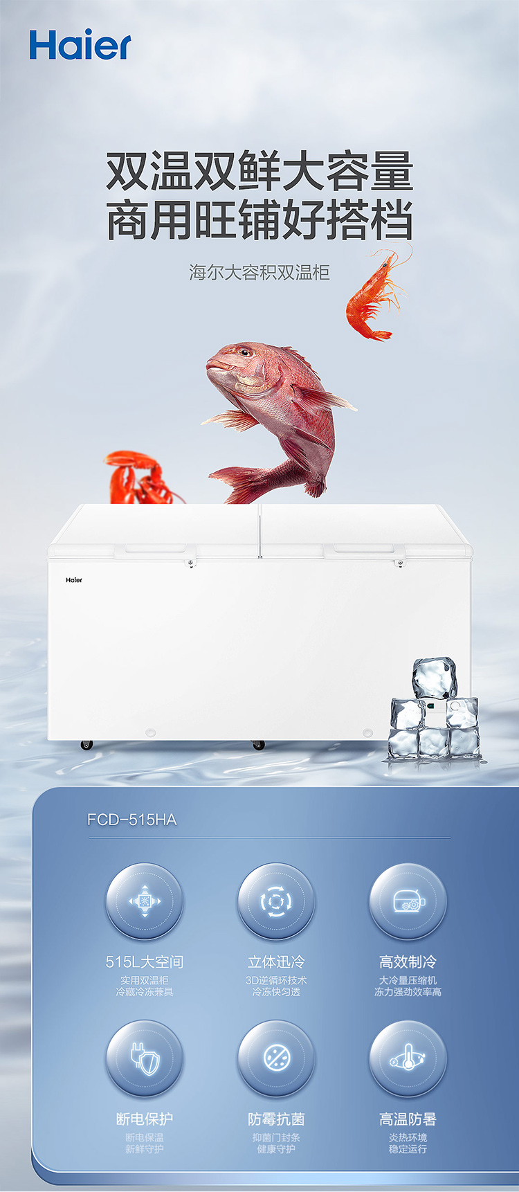 海尔 FCD-515HA 冷藏冷冻转换双温商用/家用冷柜 515升 白色 (单位:台) 白色