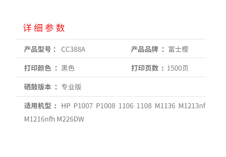 富士樱 CC388A专业版硒鼓88A适用惠普M1136 P1007 1008 1106 1108 支 黑色