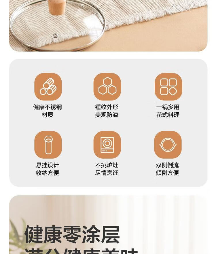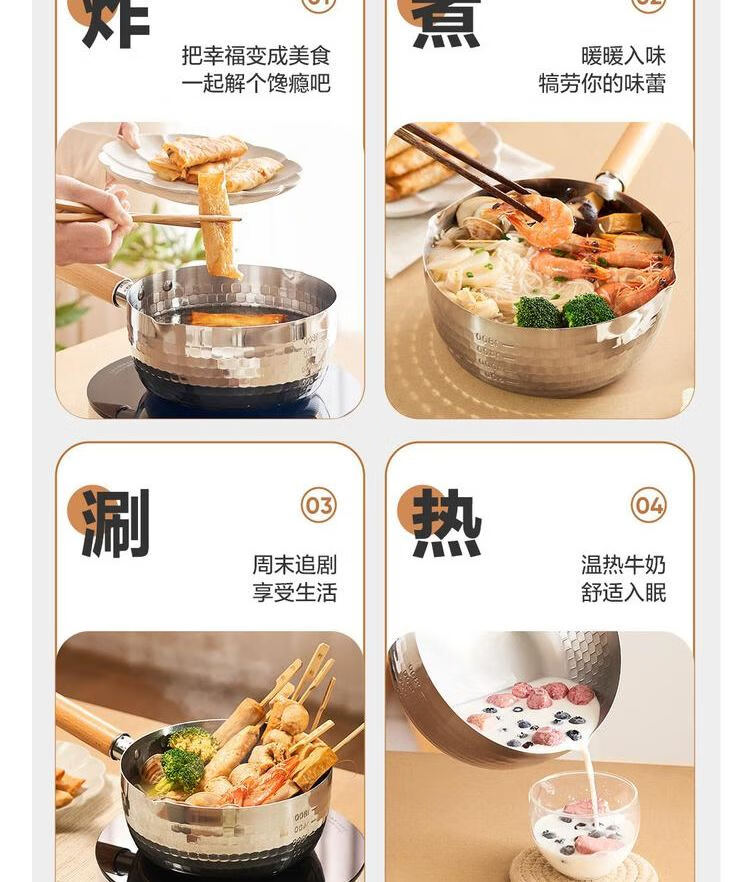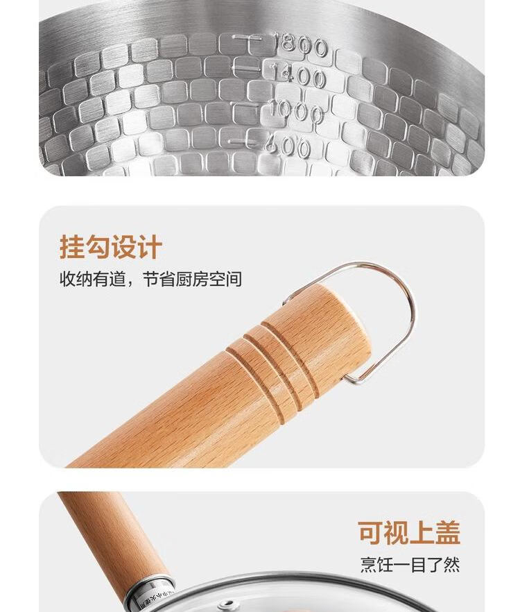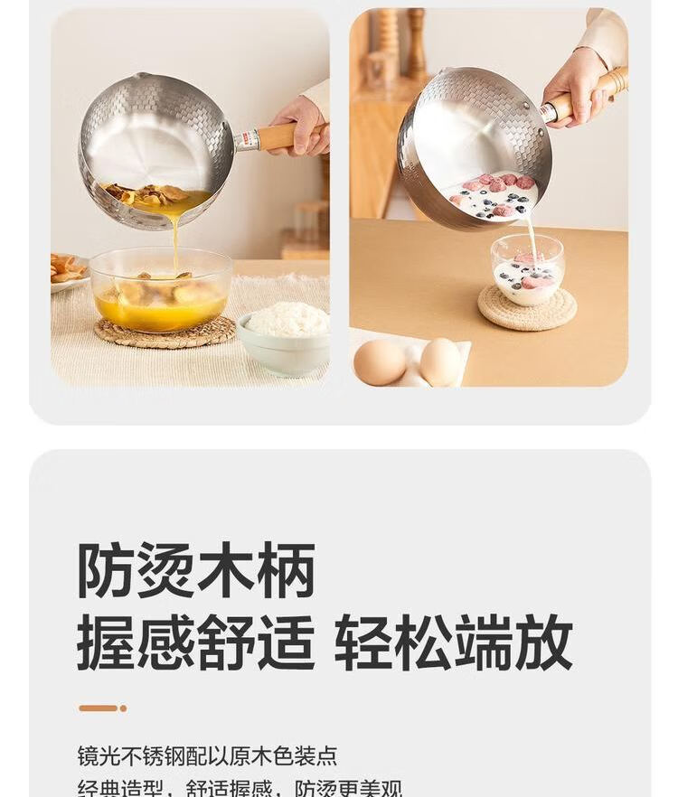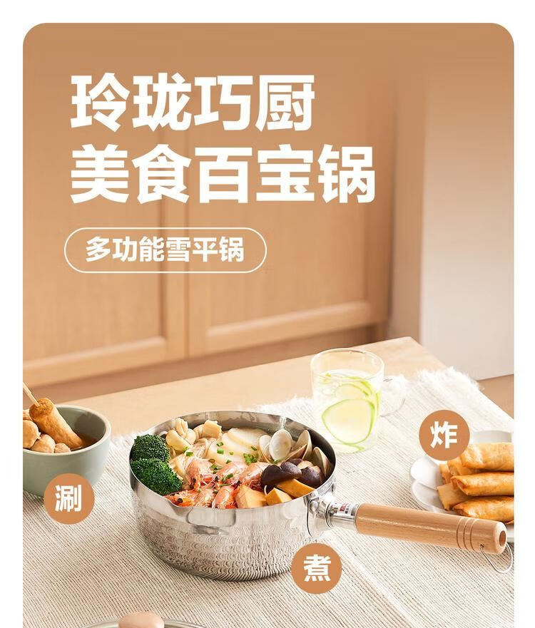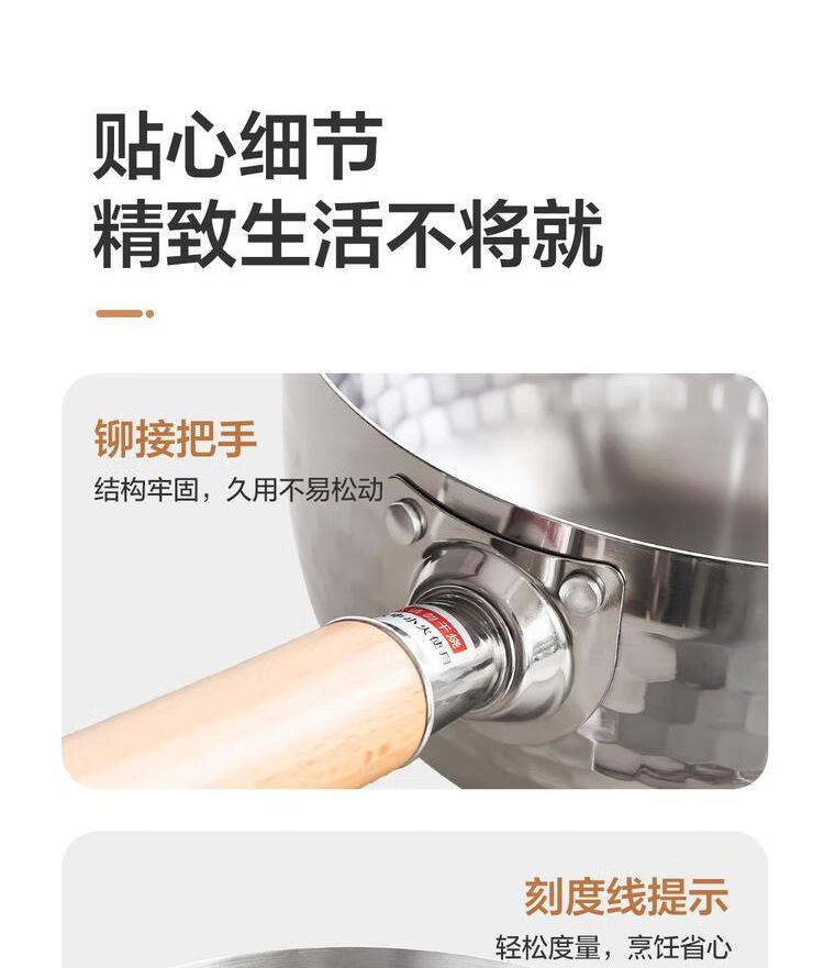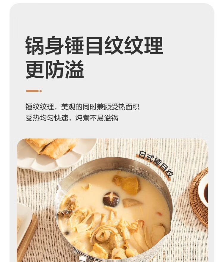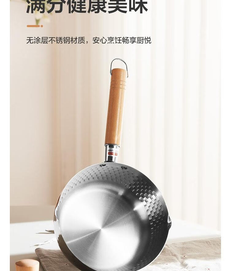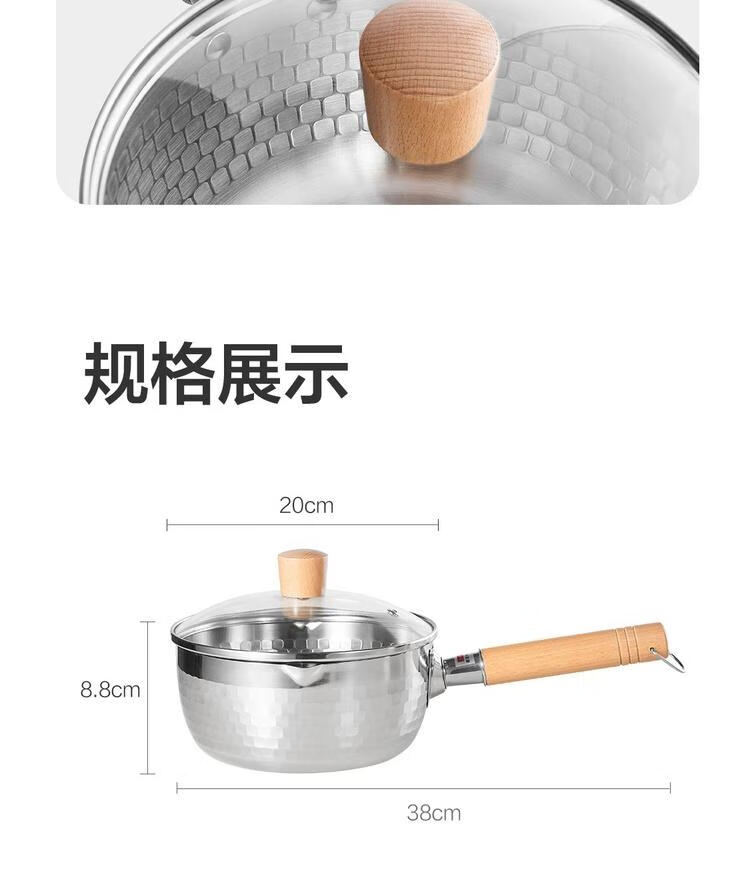网易严选 食品级不锈钢日式多功能雪平锅汤锅小奶锅 φ20cm-带盖 单位:个 不锈钢色