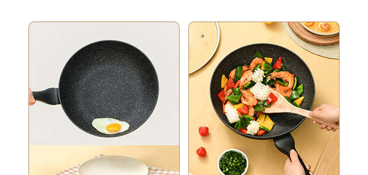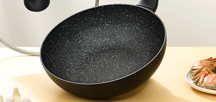 网易严选 磨砂石炒锅 进口涂层 钢珠循环冷击 轻巧 经久耐用 炒锅 铝质炒锅 单位:个 黑色