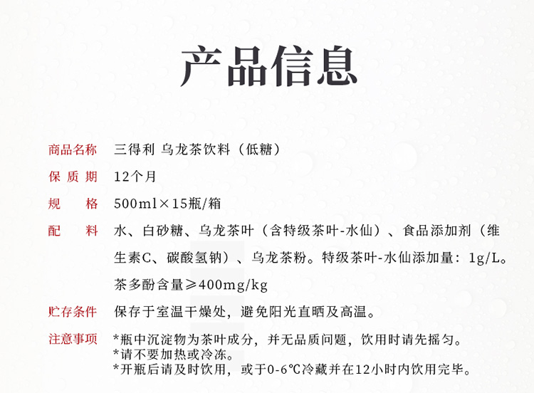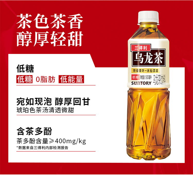 三得利低糖乌龙茶 味醇沁人、精选茶叶、去油解腻 单位:箱 500ml*15