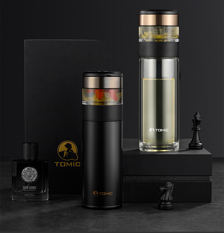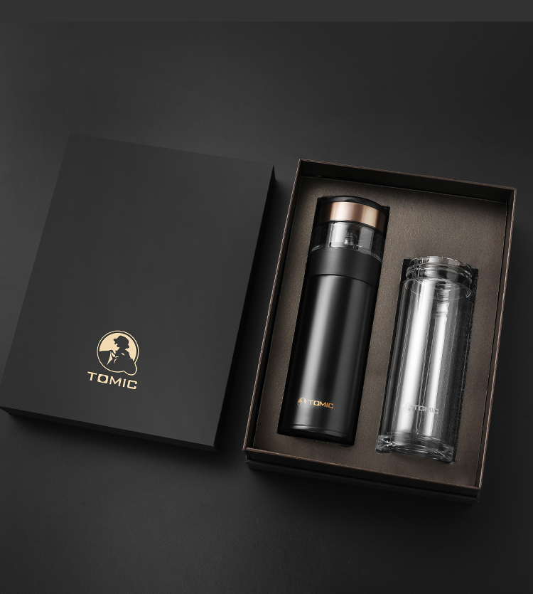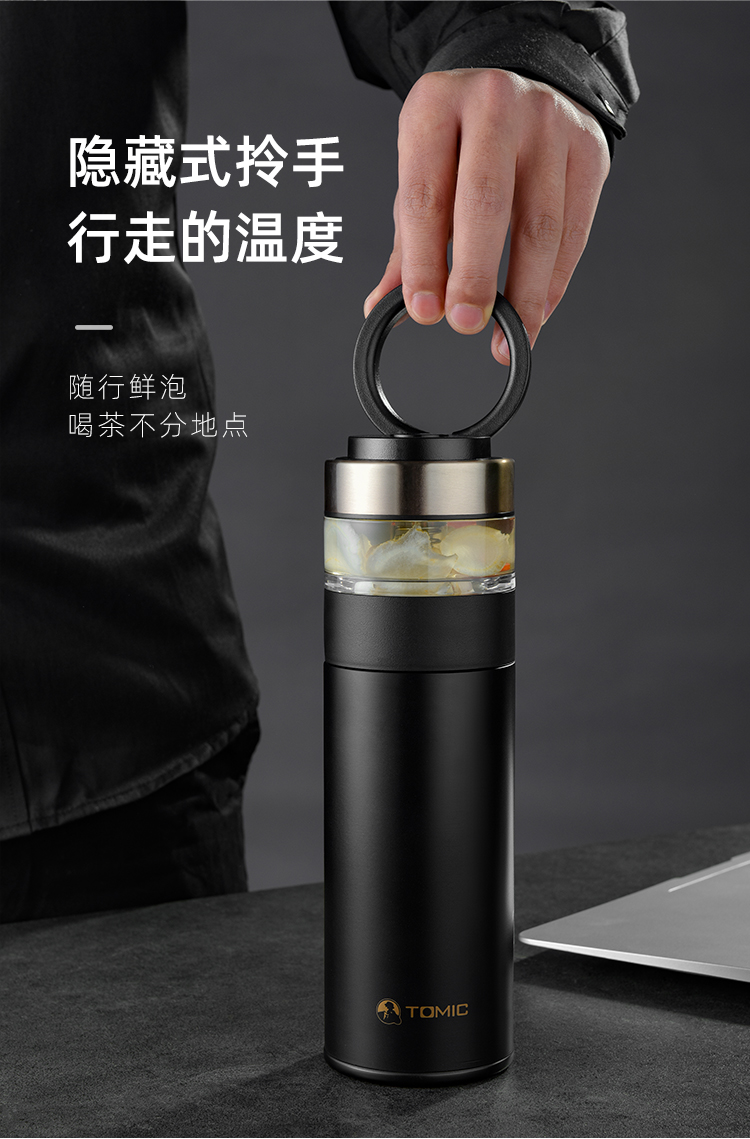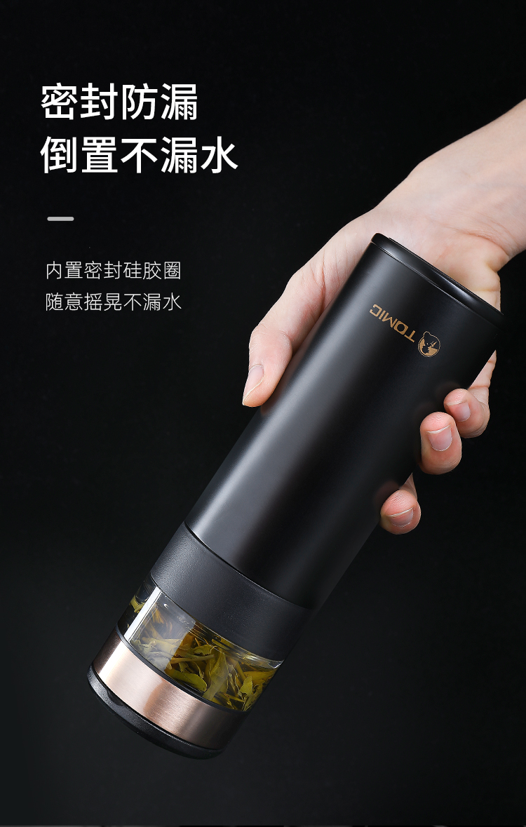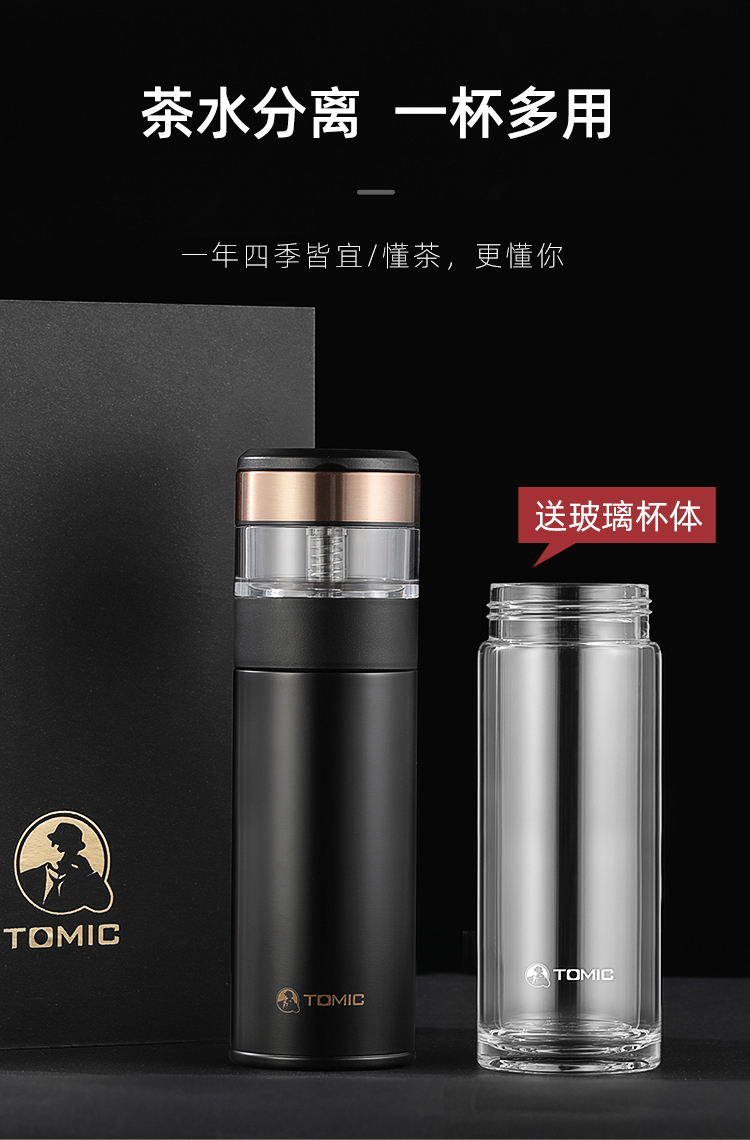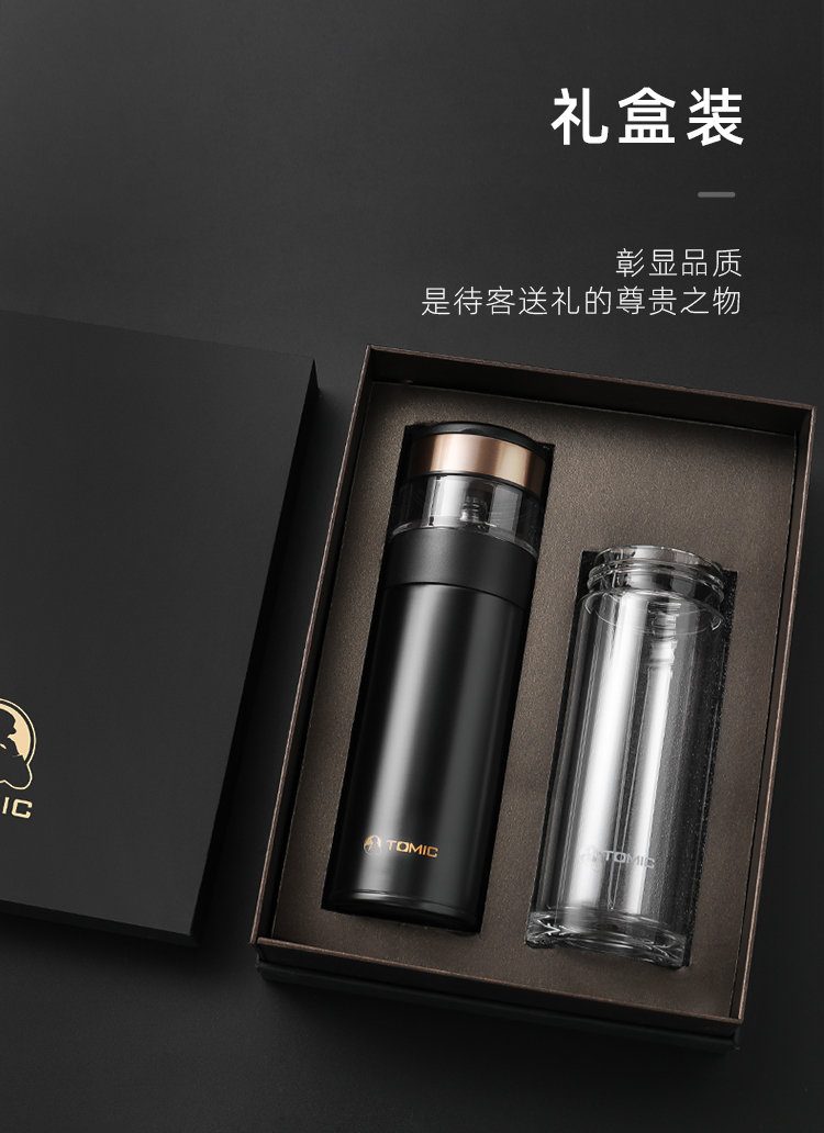 tomic特美刻陶瓷内胆保温杯男士高档茶水分离杯定制便携套装TW60059 单位:套 黑色