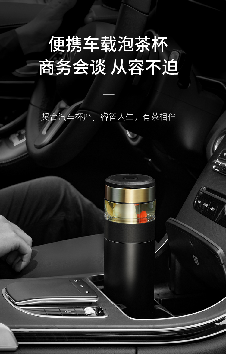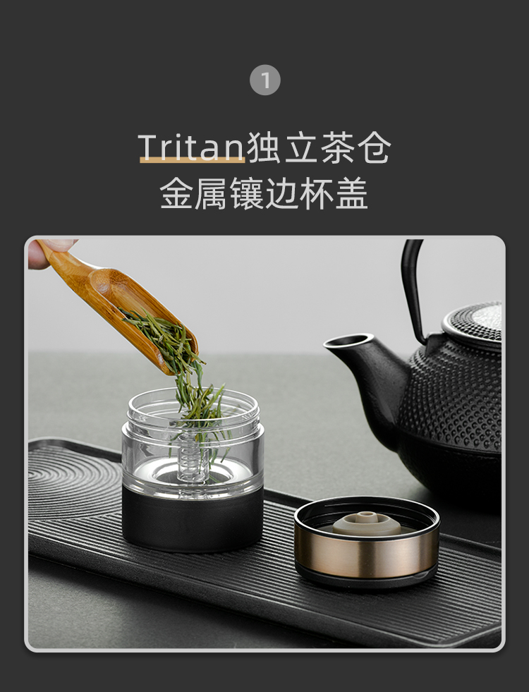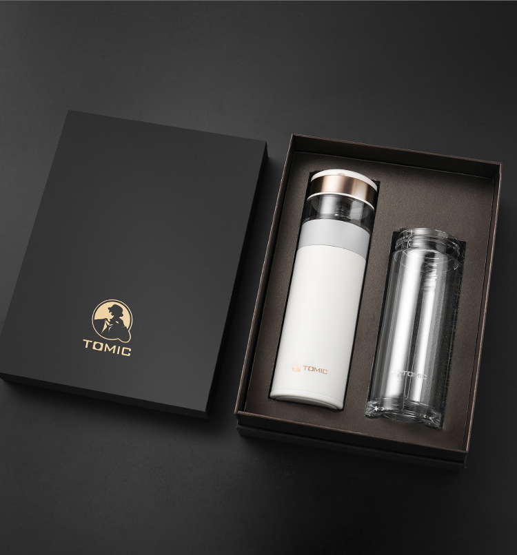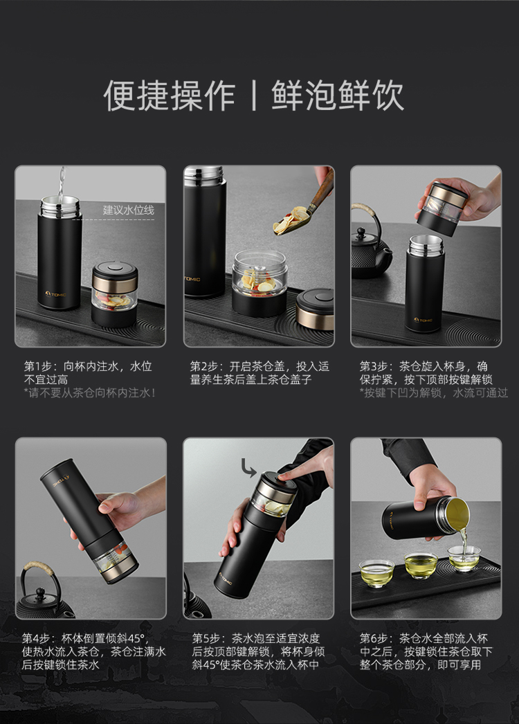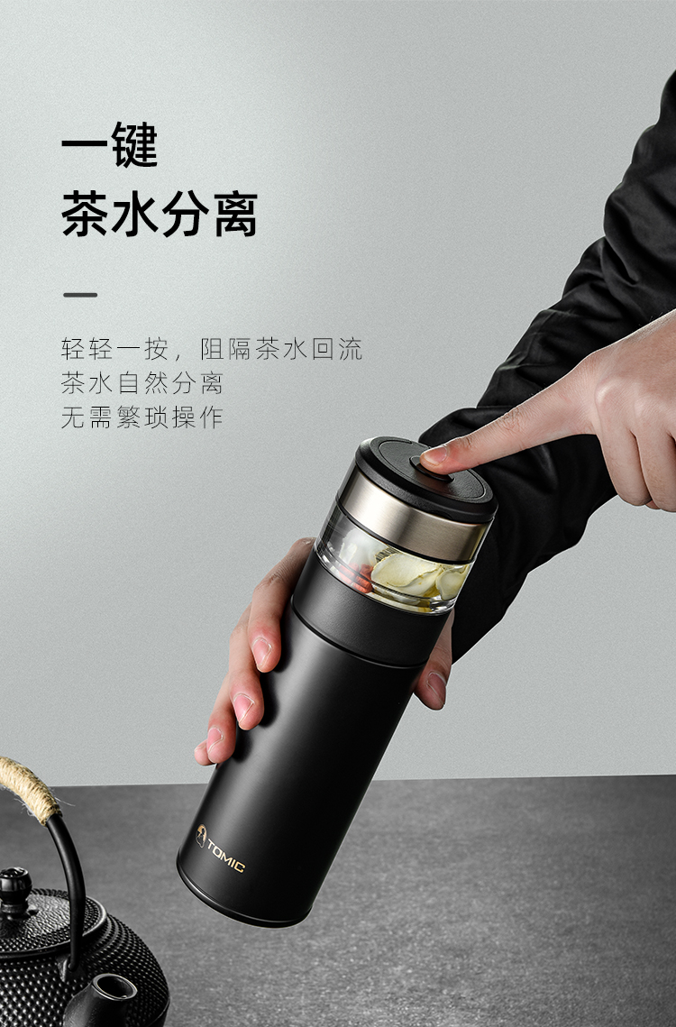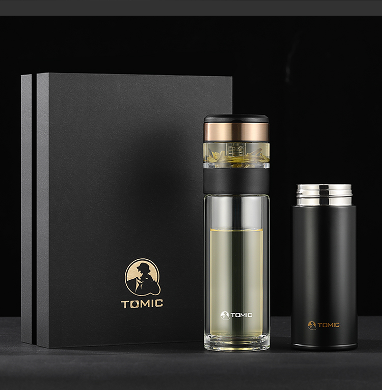 tomic特美刻陶瓷内胆保温杯男士高档茶水分离杯定制便携套装TW60059 单位:套 黑色