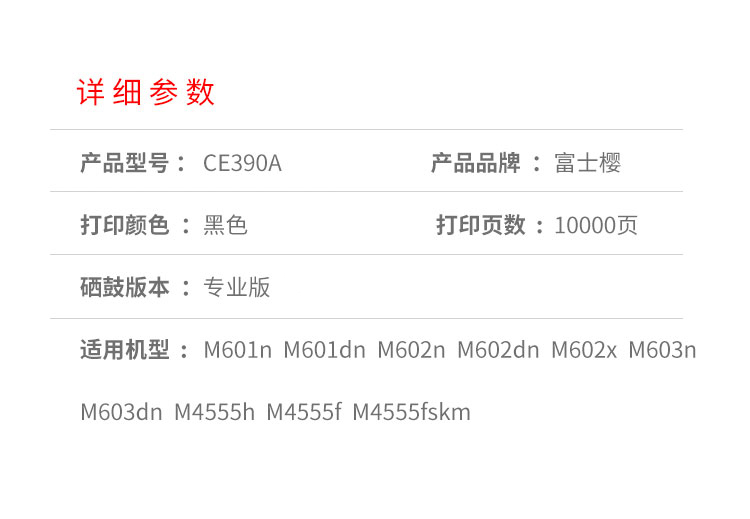 富士樱 CE390A专业版硒鼓 90A黑色适用惠普 M601(n/dn) M602(n/dn/x)支 黑色