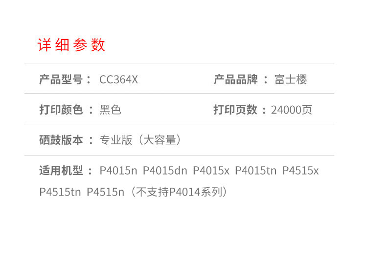 富士樱 CF364X 大容量硒鼓 64X适用惠普HP LaserJet P4015n/dn支黑色 黑色