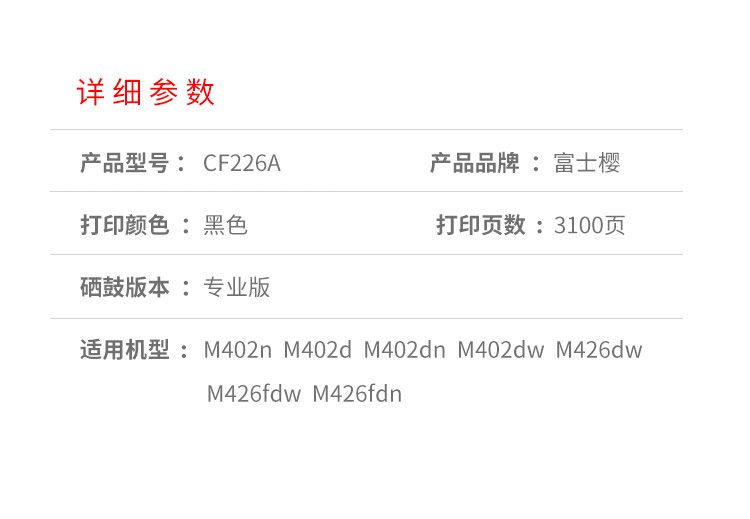 富士樱 CF226A专业版硒鼓26A适用M402n 402d 402dn 402dw M426d 支 黑色