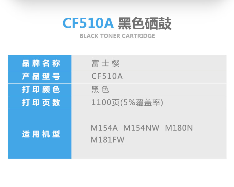 富士樱 CF510A 黑色硒鼓 204A带芯片(适用惠普HP M154a M154nw M180n支 黑色