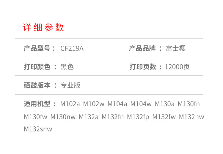 富士樱 CF219A 硒鼓组件黑色适用惠普CF217A CF218A打印机M102a/w M104支 黑色
