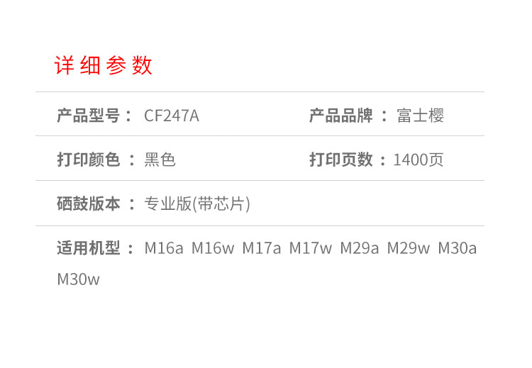 富士樱CF247A黑色硒鼓适用原装惠普M30a/M30w墨粉盒HP laserJet Pro MF支 黑色
