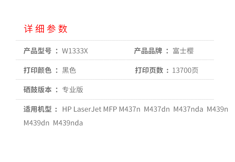 富士樱 W1333X大容量墨粉盒适用惠普m437n/dn/439n/437nda/439nda硒鼓支 黑色