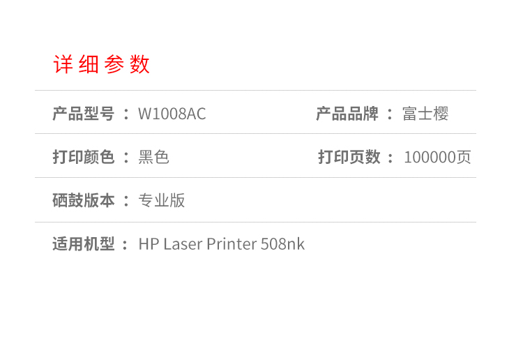 富士樱 W1008AC硒鼓架 成像鼓适用惠普HP Laser Printer 508nk打印机 支 黑色