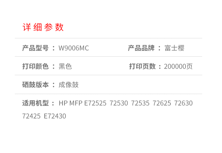 富士樱 W9006MC硒鼓架适用惠普HP MFP E72525 72530 72535 72625支 黑色