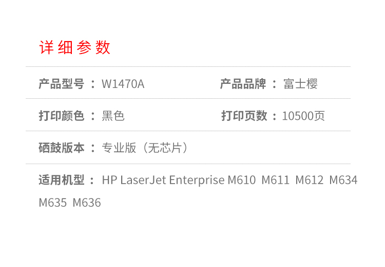 富士樱 W1470A硒鼓 不带芯片适用惠普HP LaserJet Enterprise M610 支 黑色