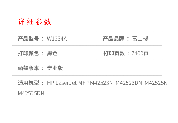 富士樱 W1334A粉盒带芯片适用惠普HP LaserJet MFP M42523N M42523支 黑色