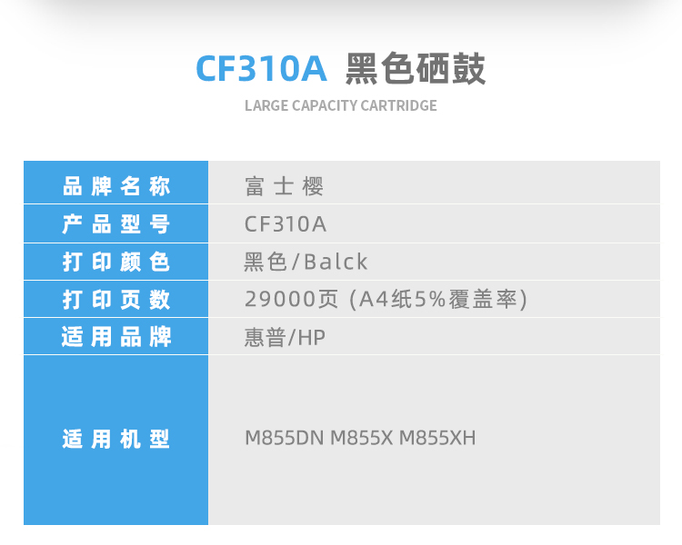 富士樱 CF310A 黑色墨粉盒 826A适用惠普HP M855dn M855x M855xh 支 黑色