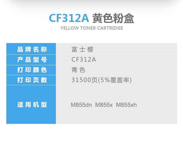 富士樱 CF312A 黄色墨粉盒 826A适用惠普HP M855dn M855x M855xh 支 黄色