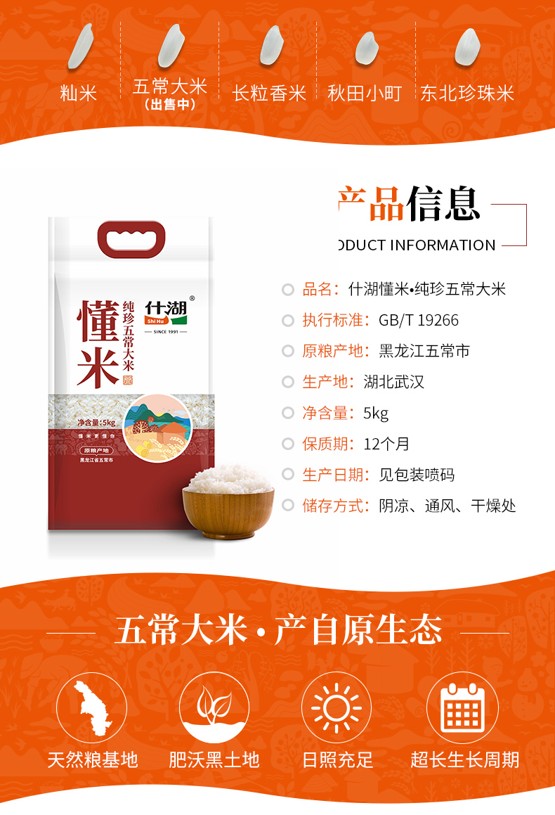 什湖 当季新米 懂米纯珍五常大米5kg 稻花香米(单位:袋) 拿铁色