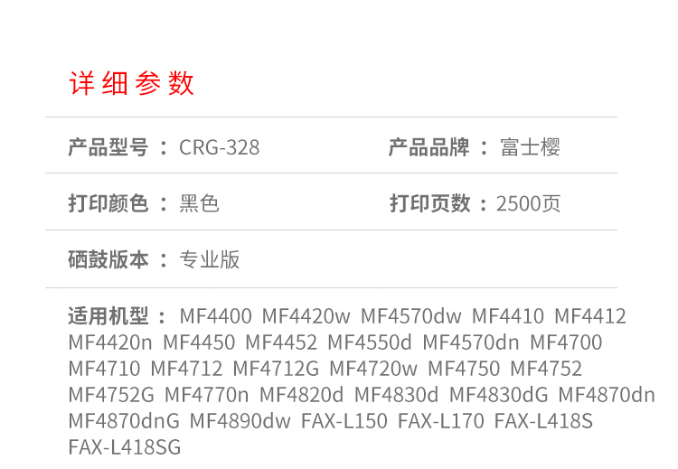 富士樱 CRG-328黑色硒鼓 专业版 适用佳能MF4712G 4752G 4410 4412 支 黑色