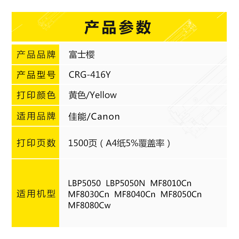 富士樱 CRG-416 Y 黄色硒鼓 适用佳能 LBP5050 5050N iC MF8010Cn支 黄色