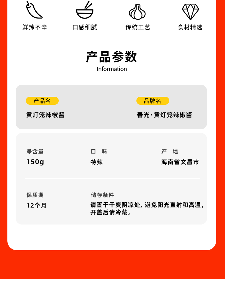 春光灯笼辣椒酱(特辣)150G*2瓶 象牙色