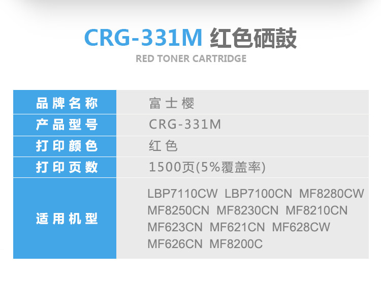 富士樱 CRG-331 M 红色硒鼓 适用佳能 LBP7110Cw 7100Cn MF8280 支 红色