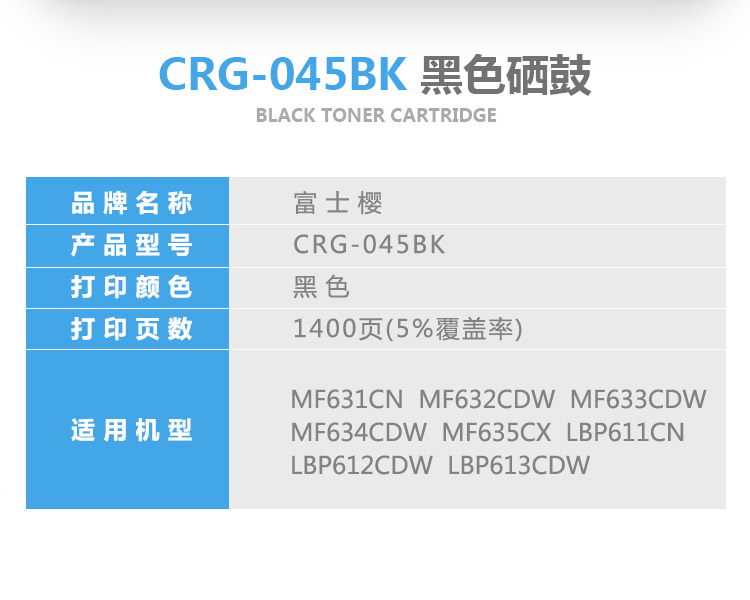 富士樱 CRG-045 BK 黑色硒鼓 适用佳能MF631 MF632 MF633 MF634 支 黑色