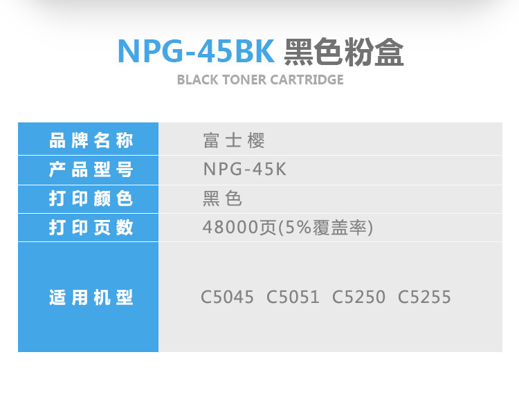 富士樱 NPG-45 BK黑色大容量墨粉(适用佳能iR ADV C5045 C5051 C5250支 黑色