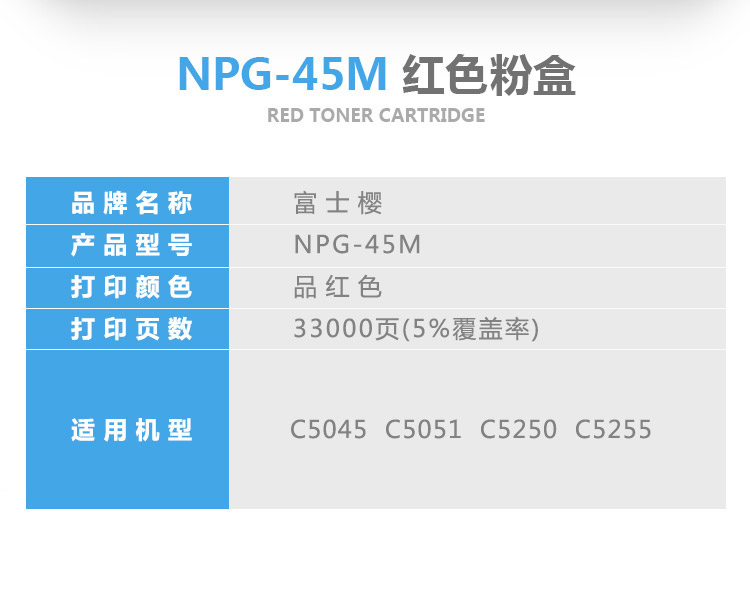 富士樱 NPG-45 M 红色大容量墨粉(适用佳能iR ADV C5045 C5051 C5250支 黑色