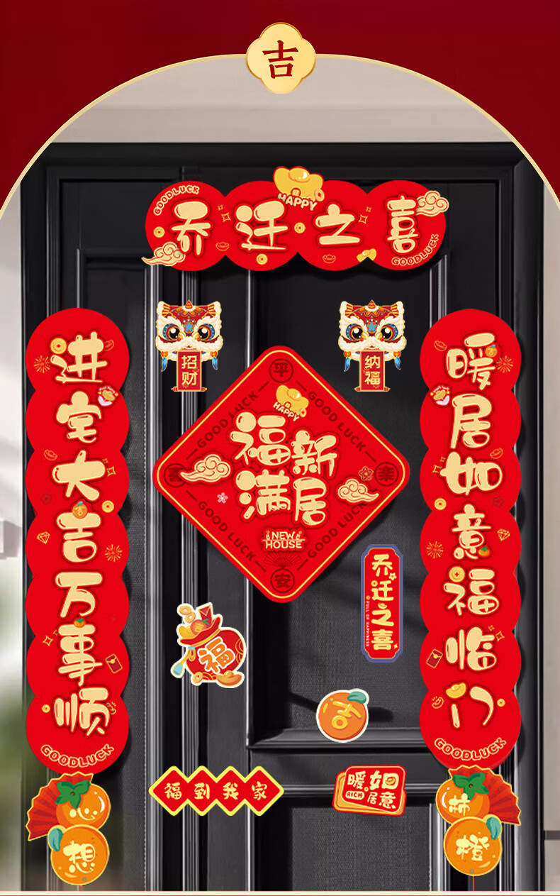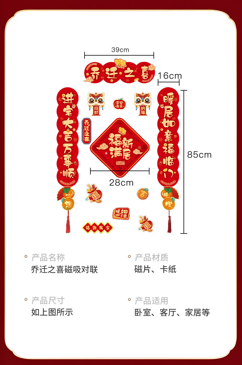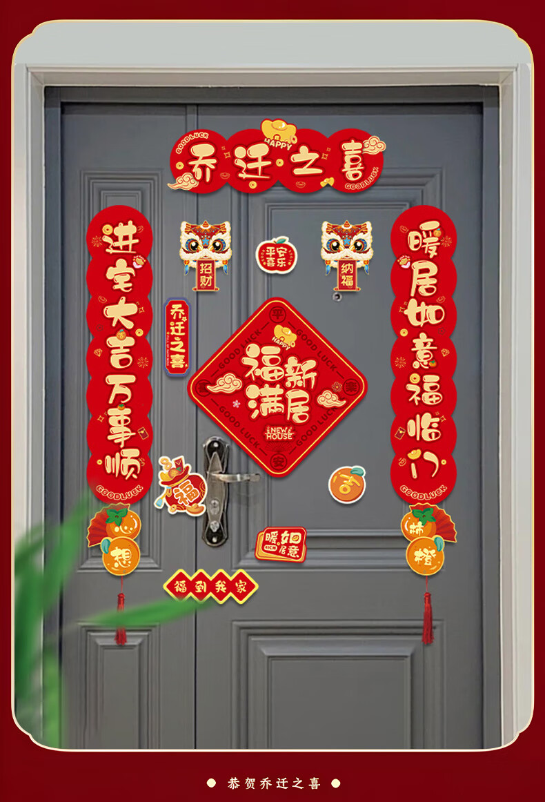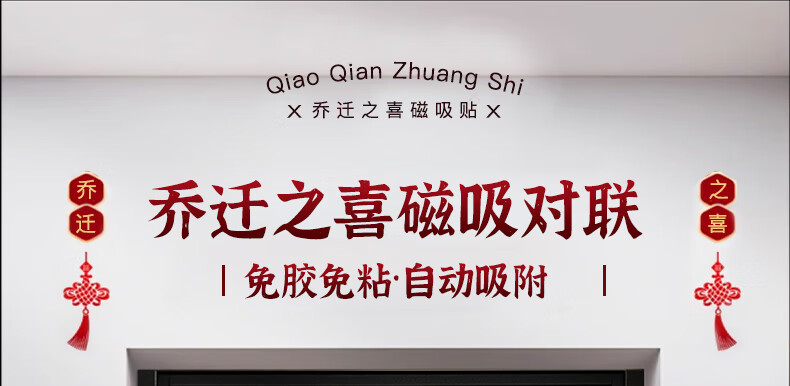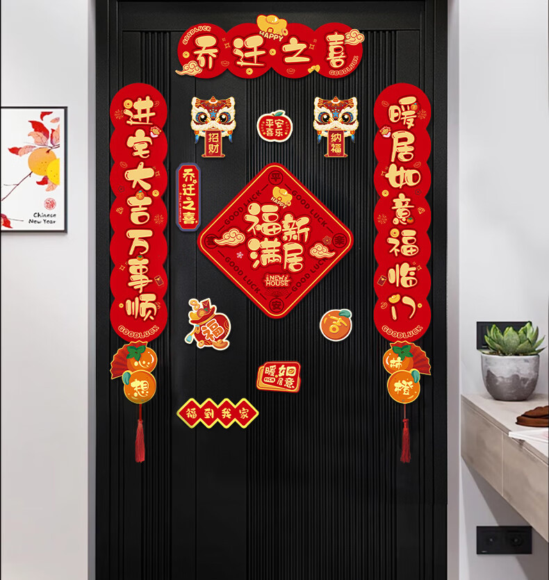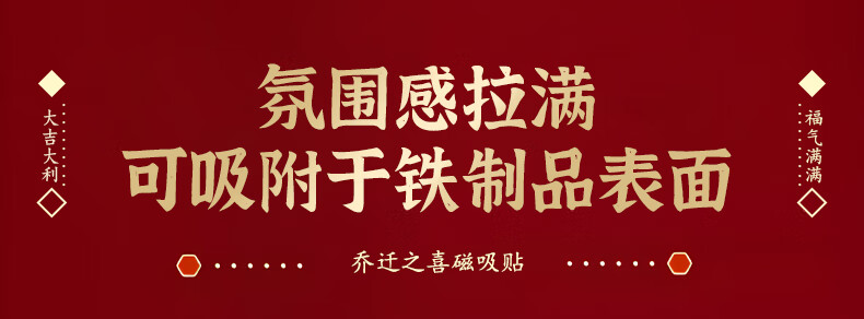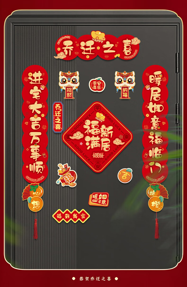 墨斗鱼 磁吸对联乔迁对联乔迁之喜装饰用品全套搬家礼物新居入户门贴 单位:套 红色