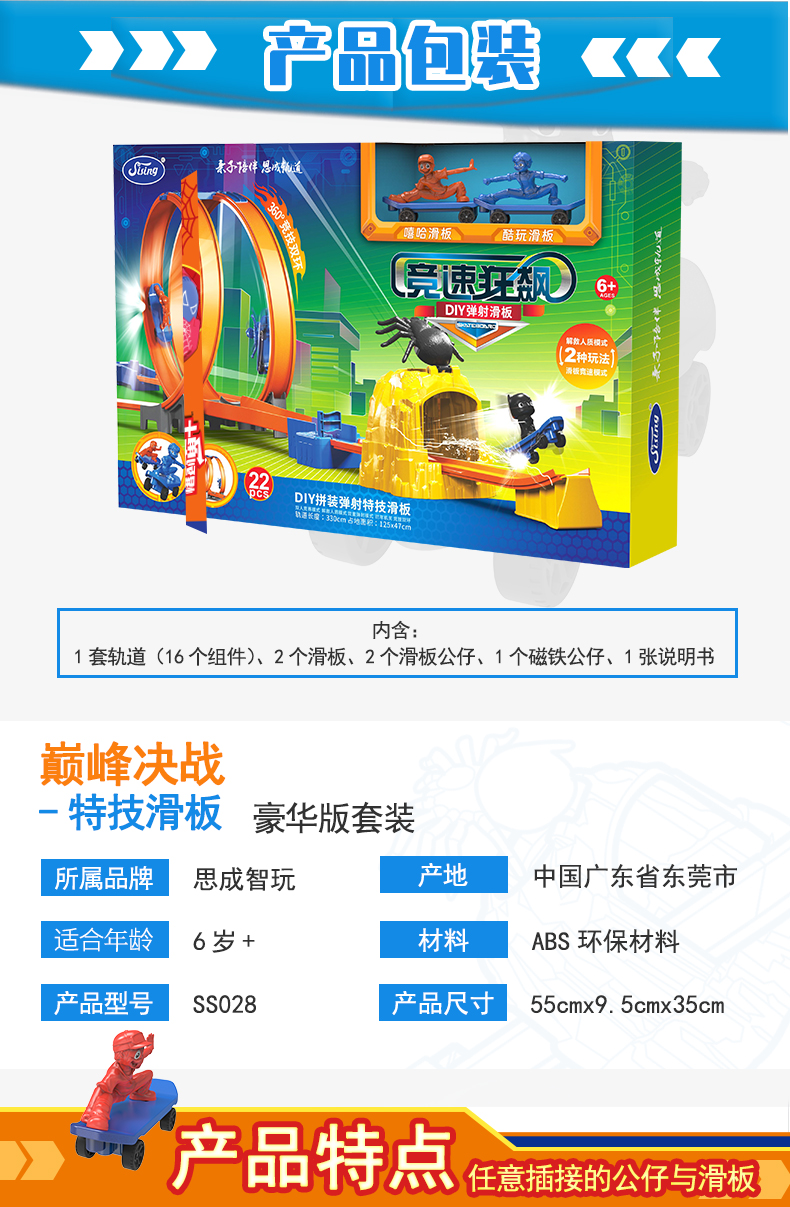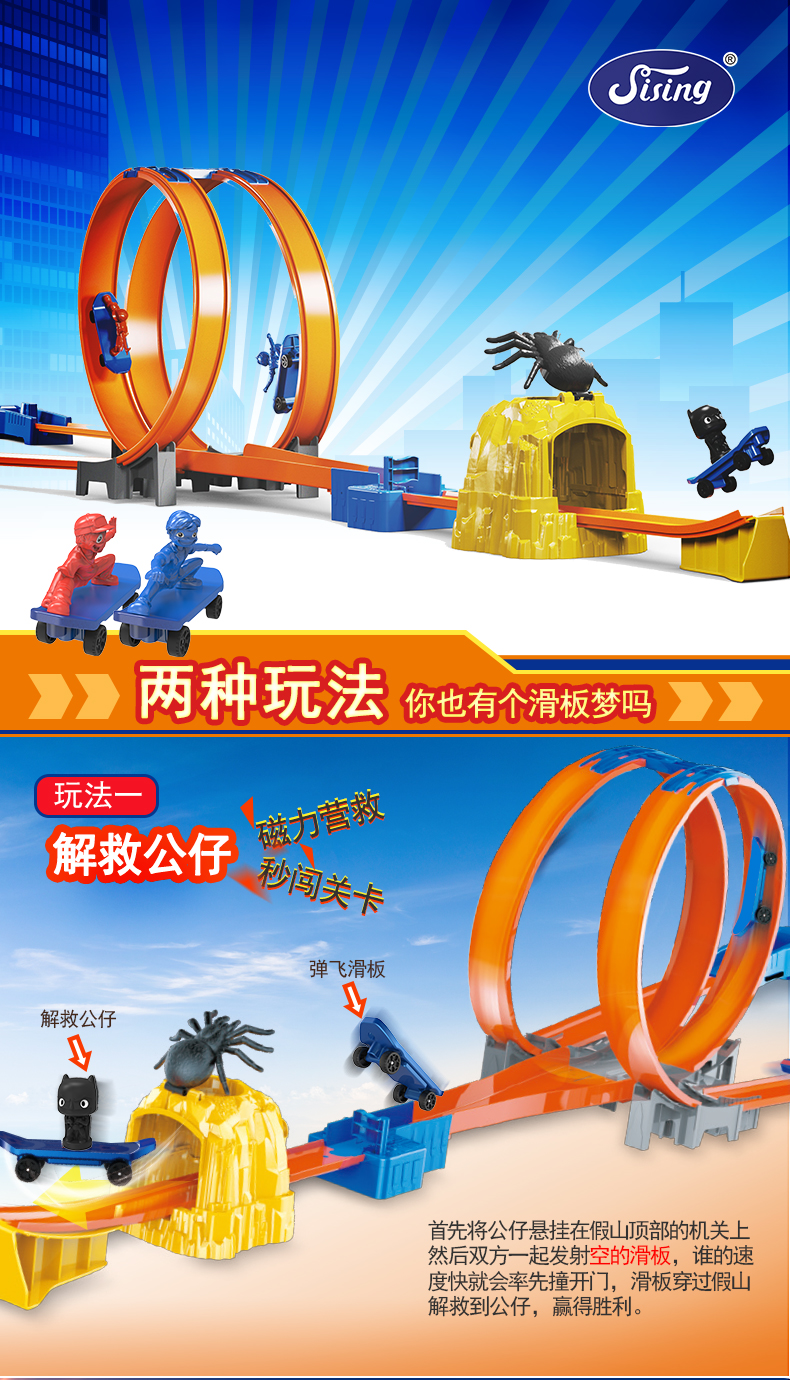 思成(SISING)爆裂勇士轨道双人竞技滑板车赛道玩具竞速弹射撞击轨道车礼盒套装 SS028巅峰决战 巅峰决战特技滑板 -豪华版套装