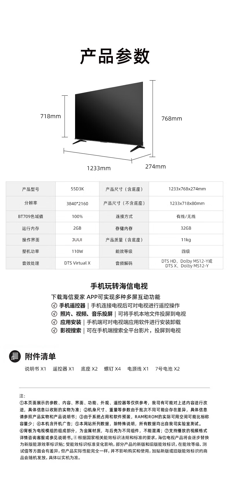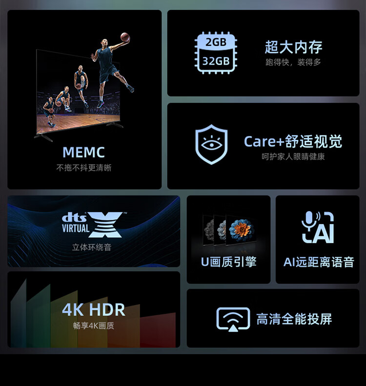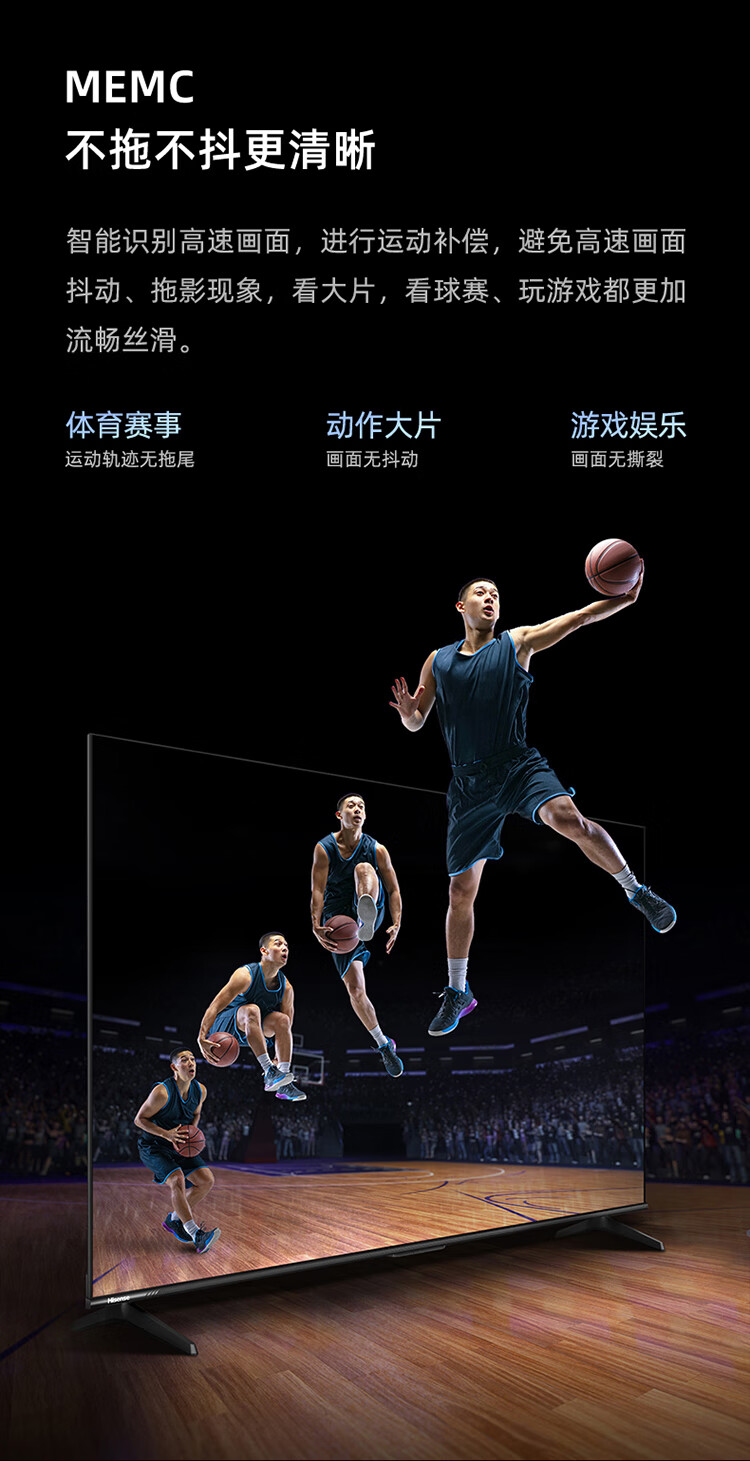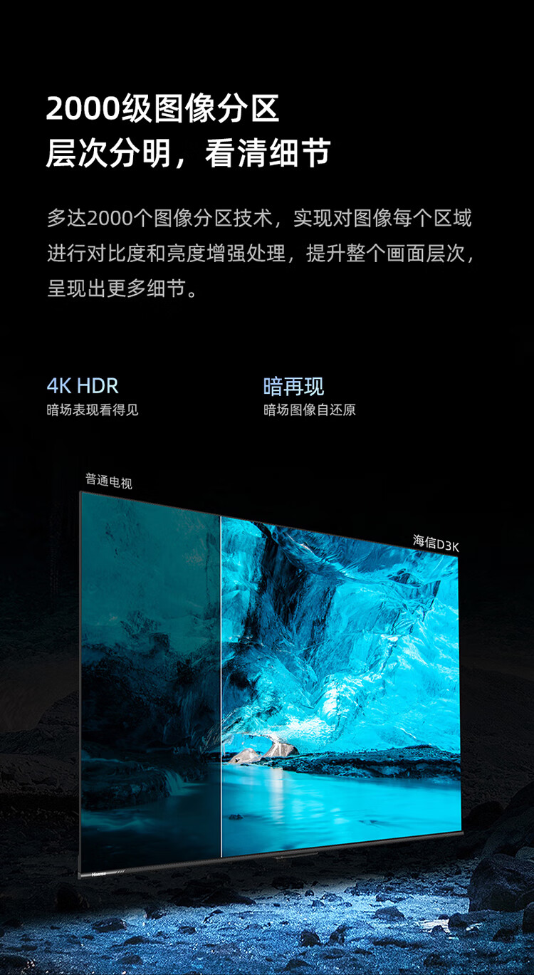 海信55D3K 55英寸 MEMC运动防抖 2+32GB 语音智控 U画质引擎 单位:台 曜石黑