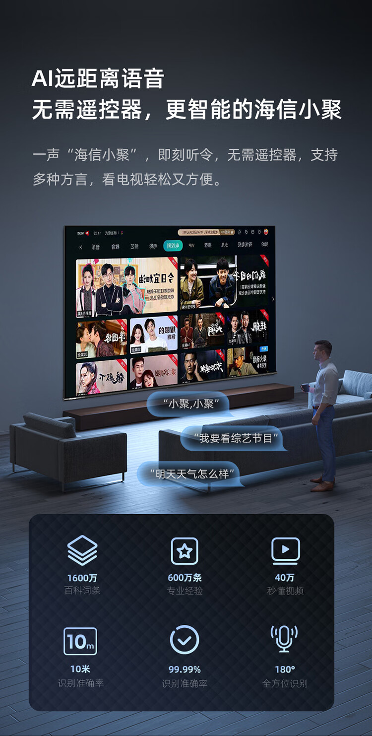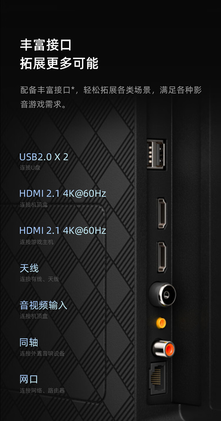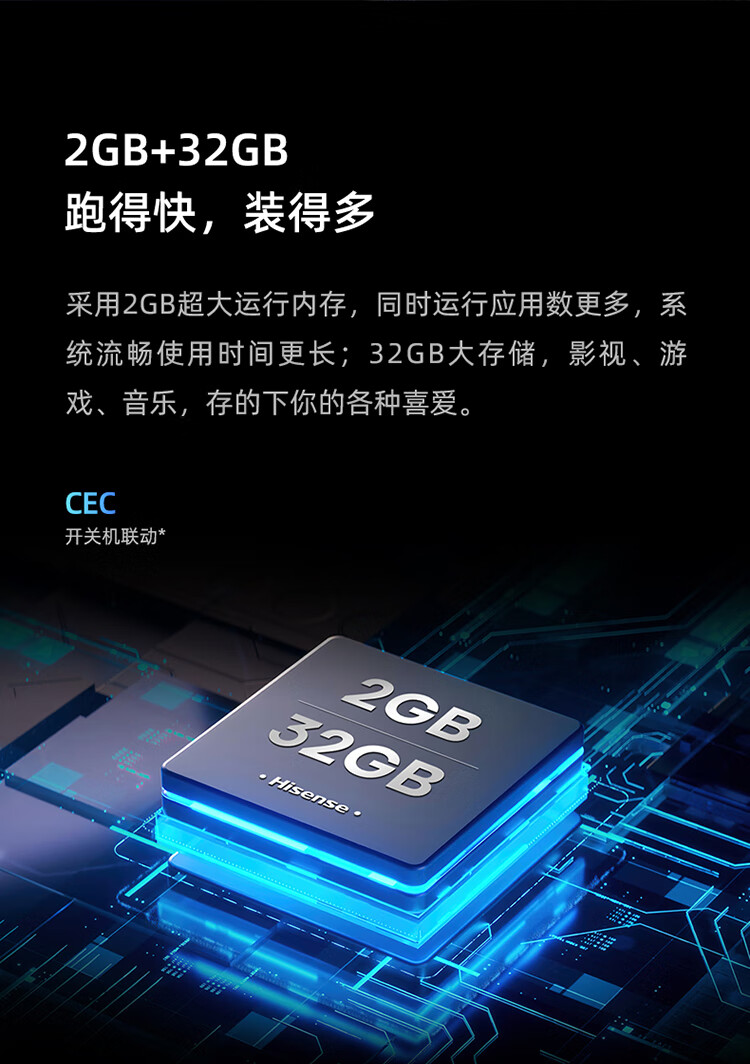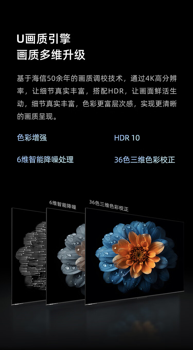 海信55D3K 55英寸 MEMC运动防抖 2+32GB 语音智控 U画质引擎 单位:台 曜石黑