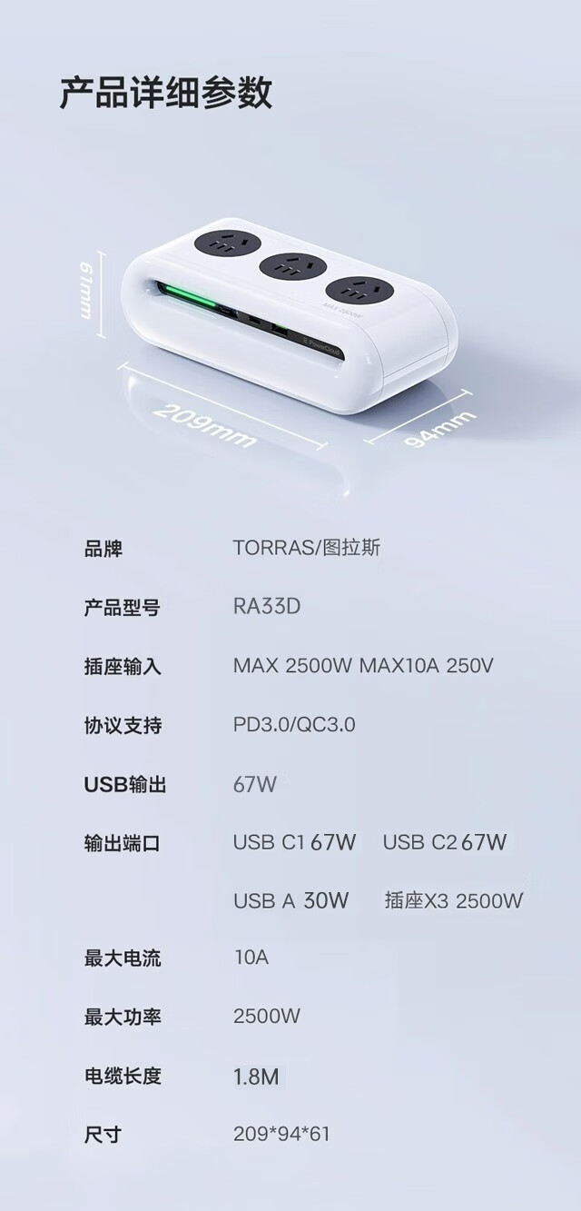 图拉斯-云 PowerCloud(升级版)桌面排插 单位:个 白色