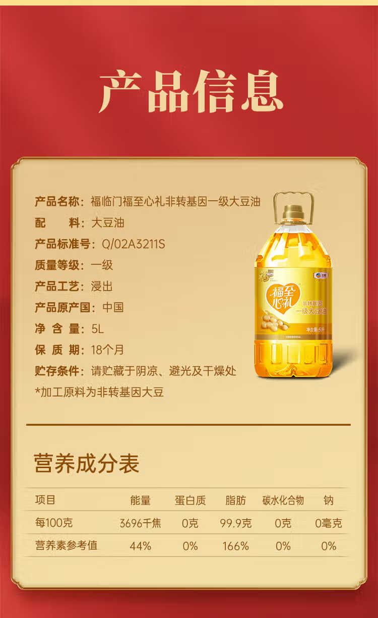 福至心礼非转基因一级大豆油5L(单位:桶) 黄色