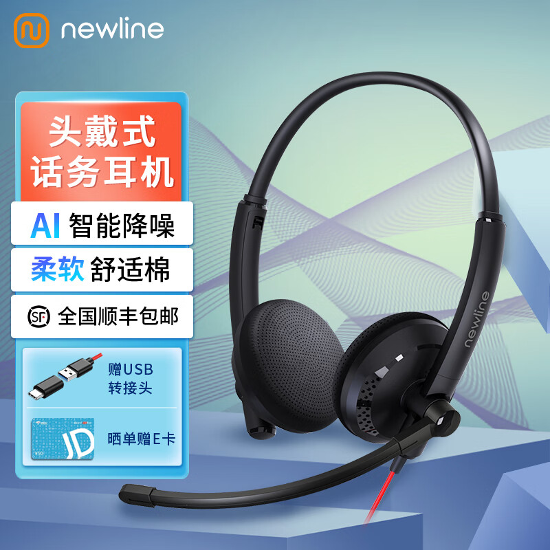 newline NewCoo NC-WH2202 USB-C转USB-A黑色 有线双耳接口耳机 1个 黑色