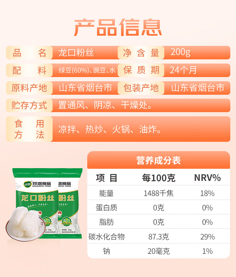 双塔龙口粉丝200g*2包*12单位:份
