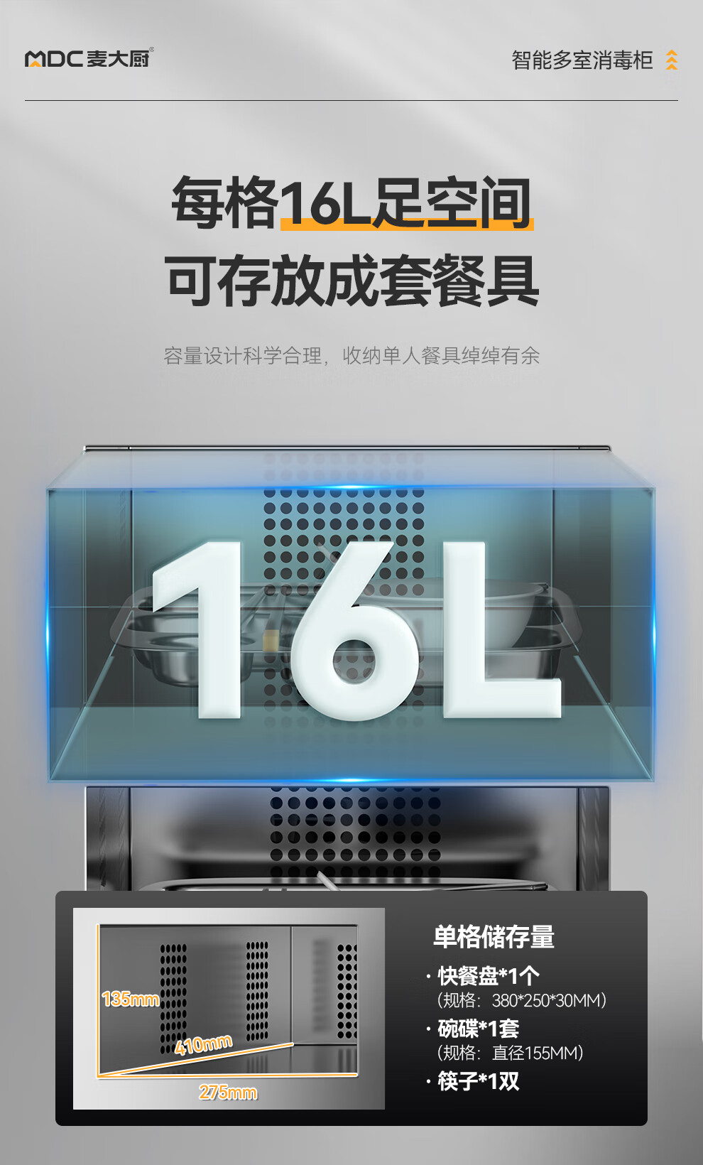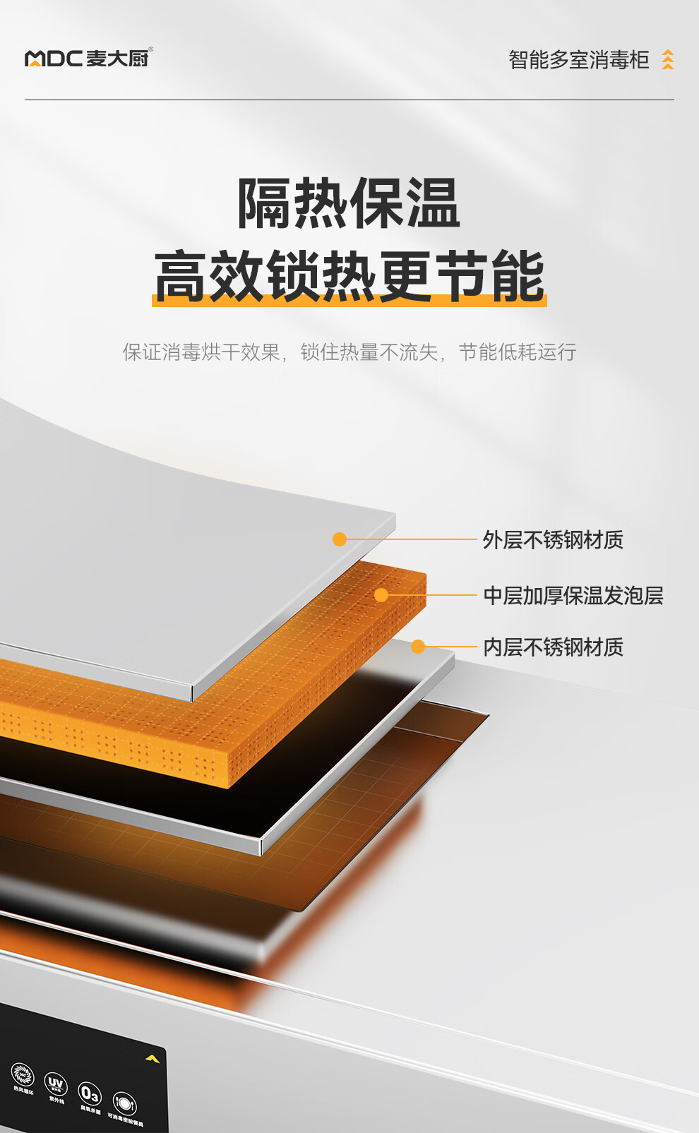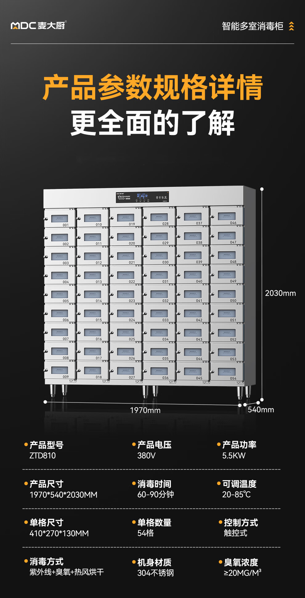 麦大厨智能型 380V 5.5KW ZTD810 热风循环54室中温消毒柜(臭氧+紫外线+热风)台 不锈钢色