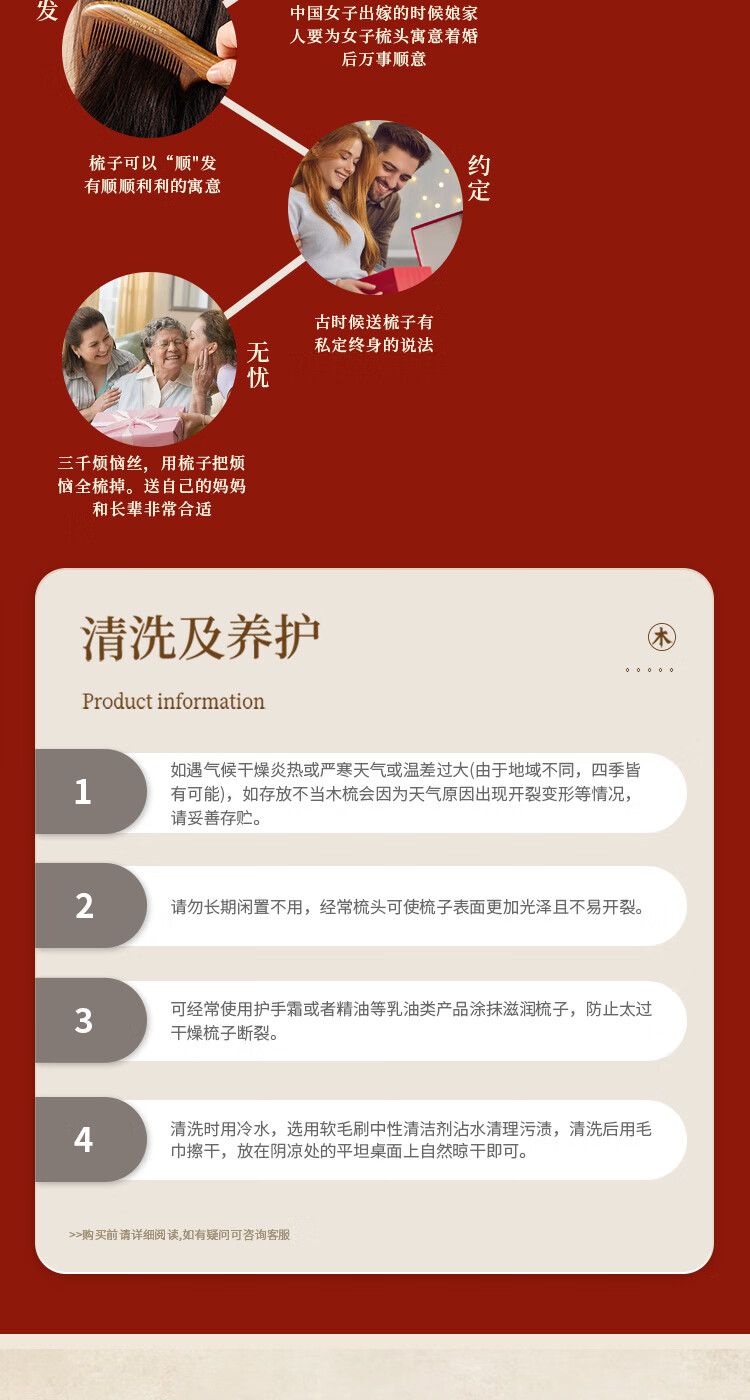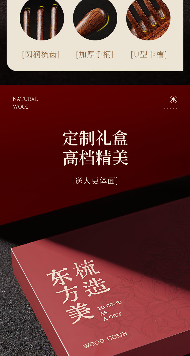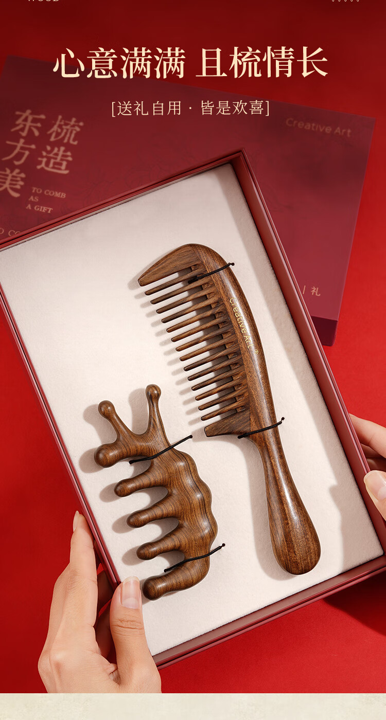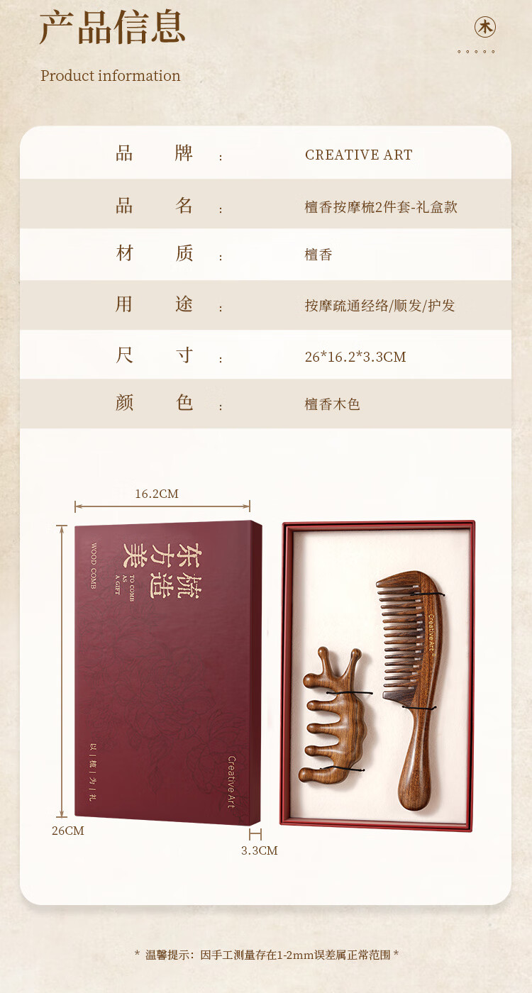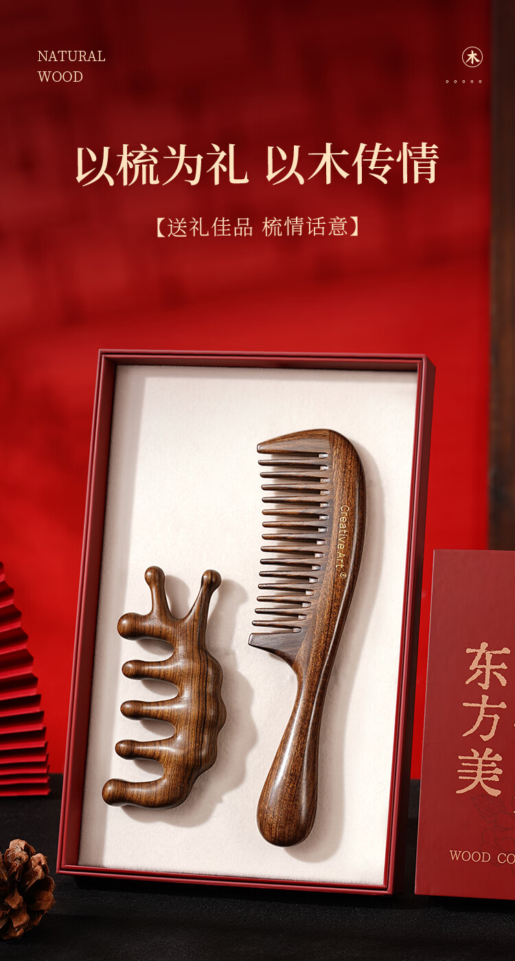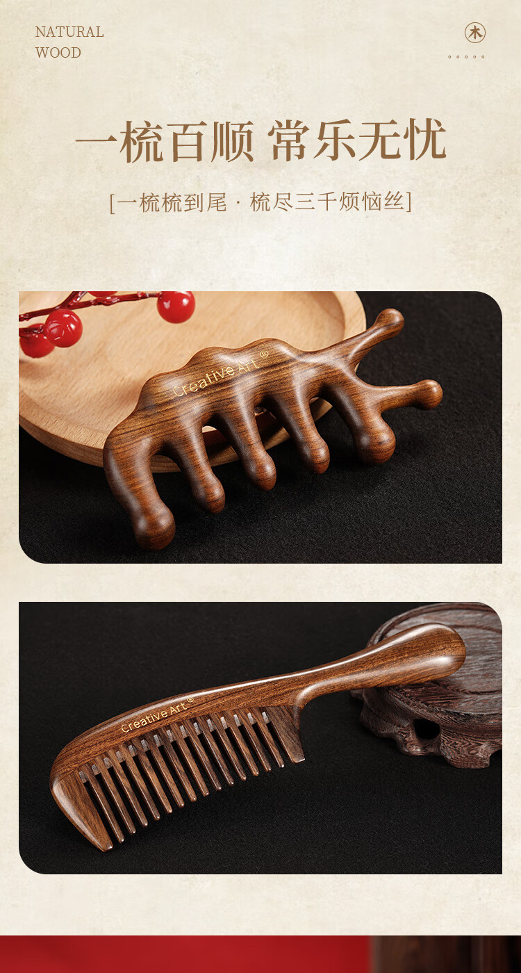 Creative Art 檀香木梳 木色2件套CA-GQ1240704-M2P(单位:套) 绿檀木色