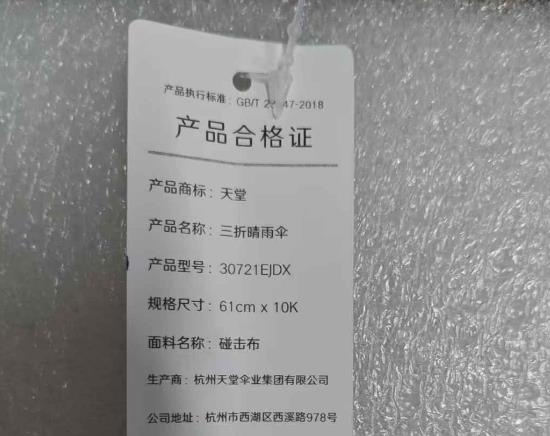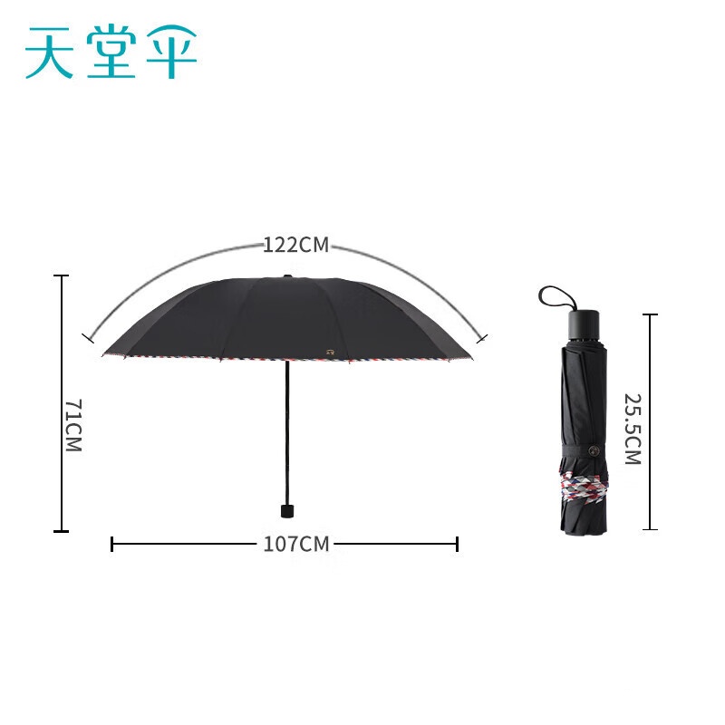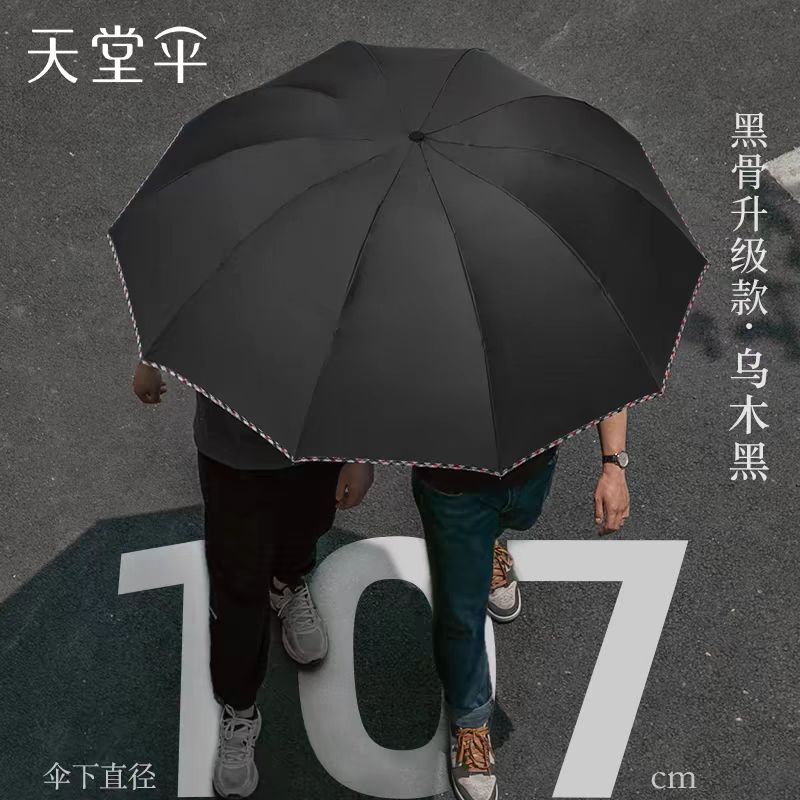 天堂【30721EJDX】 三折双人大伞 10骨抗风雨伞-/把 乌木黑