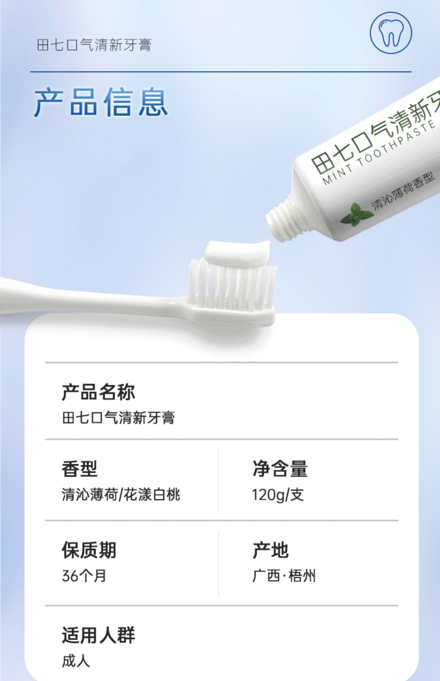 田七口气清新牙膏120g(薄荷)单位:支 白色